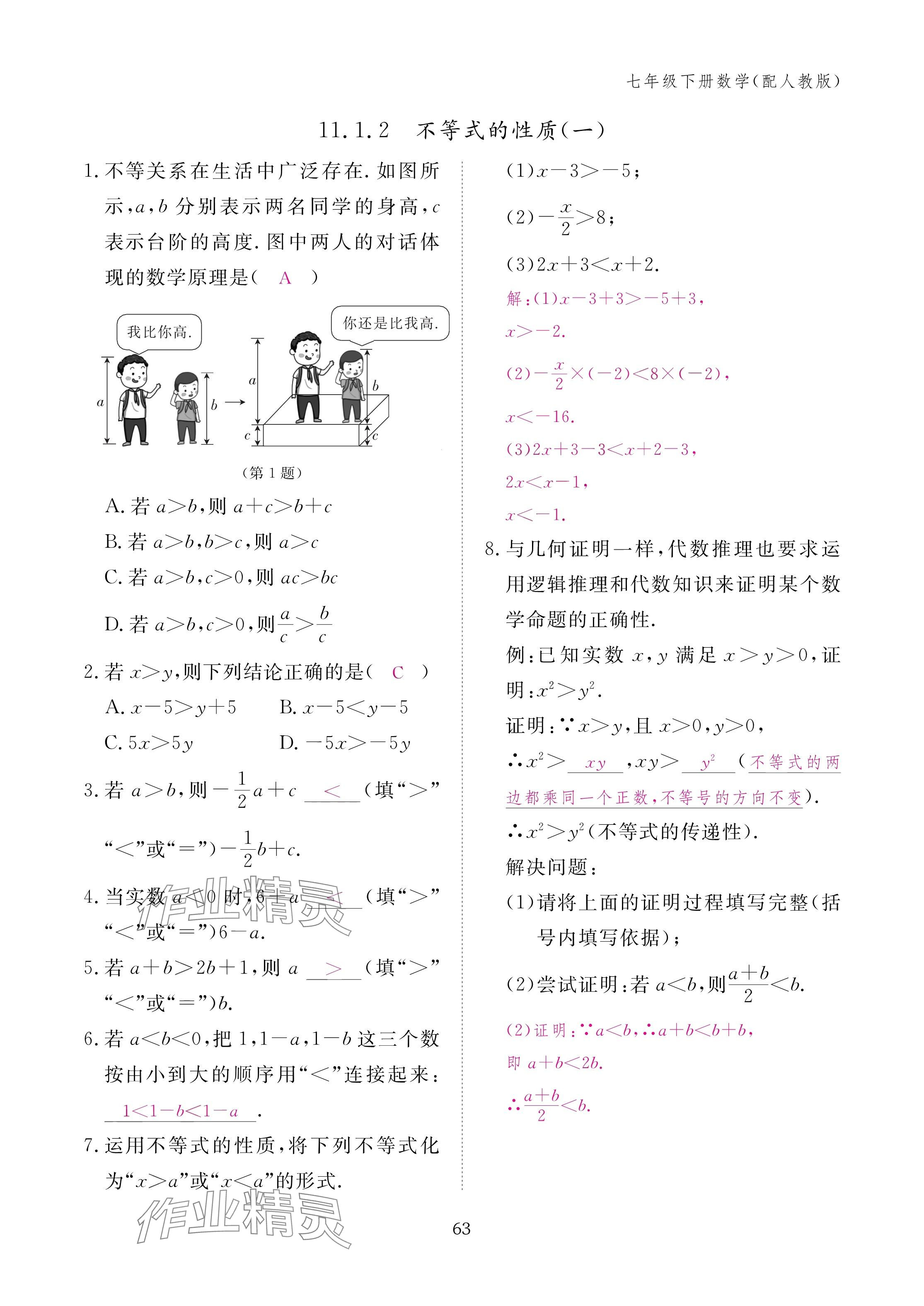 注:目前有些书本章节名称可能整理的还不是很完善,但都是按照顺序排列的,请同学们按照顺序仔细查找。练习册 2025年作业本江西教育出版社七年级数学下册人教版 答案主要是用来给同学们做完题方便对答案用的,请勿直接抄袭。