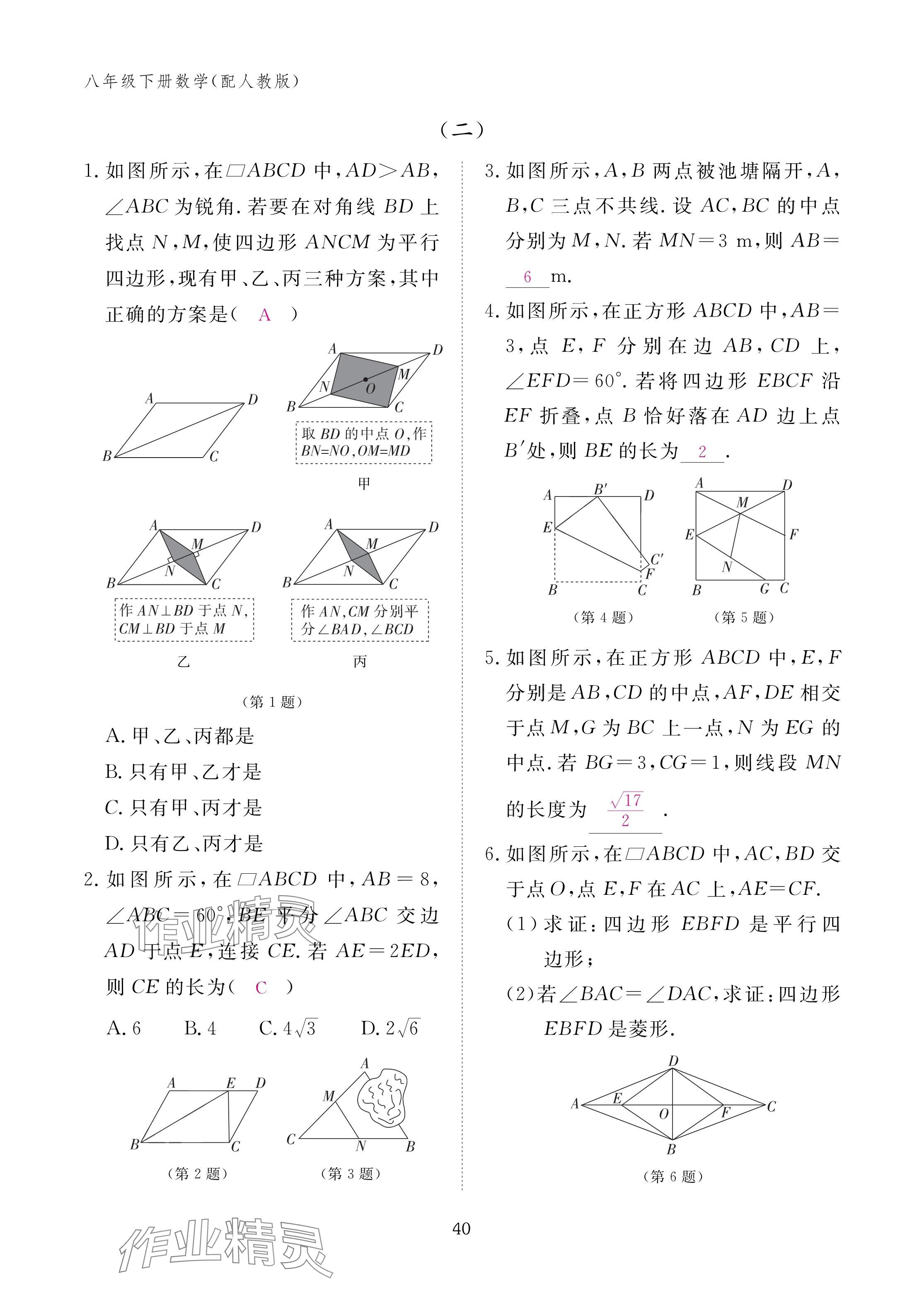 注:目前有些书本章节名称可能整理的还不是很完善,但都是按照顺序排列的,请同学们按照顺序仔细查找。练习册 2025年作业本江西教育出版社八年级数学下册人教版 答案主要是用来给同学们做完题方便对答案用的,请勿直接抄袭。