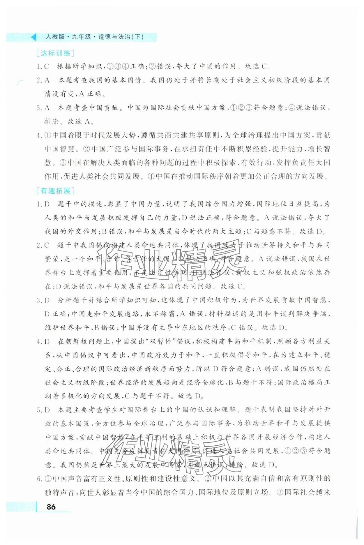 注:目前有些书本章节名称可能整理的还不是很完善,但都是按照顺序排列的,请同学们按照顺序仔细查找。练习册 2025年名师点拨配套练习课时作业九年级道德与法治下册人教版 答案主要是用来给同学们做完题方便对答案用的,请勿直接抄袭。