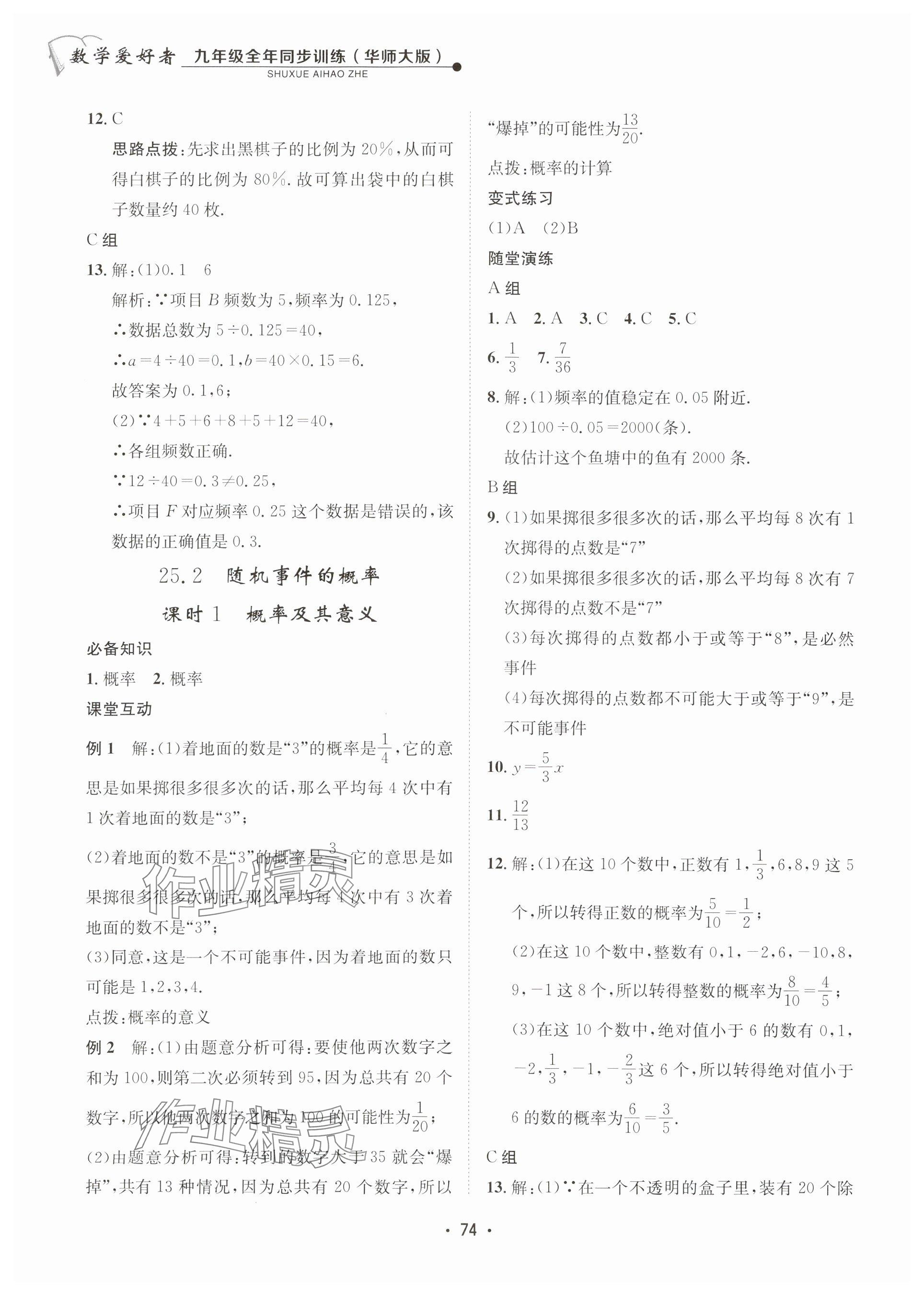 注:目前有些书本章节名称可能整理的还不是很完善,但都是按照顺序排列的,请同学们按照顺序仔细查找。练习册 2025年数学爱好者同步训练九年级全一册华师大版 答案主要是用来给同学们做完题方便对答案用的,请勿直接抄袭。