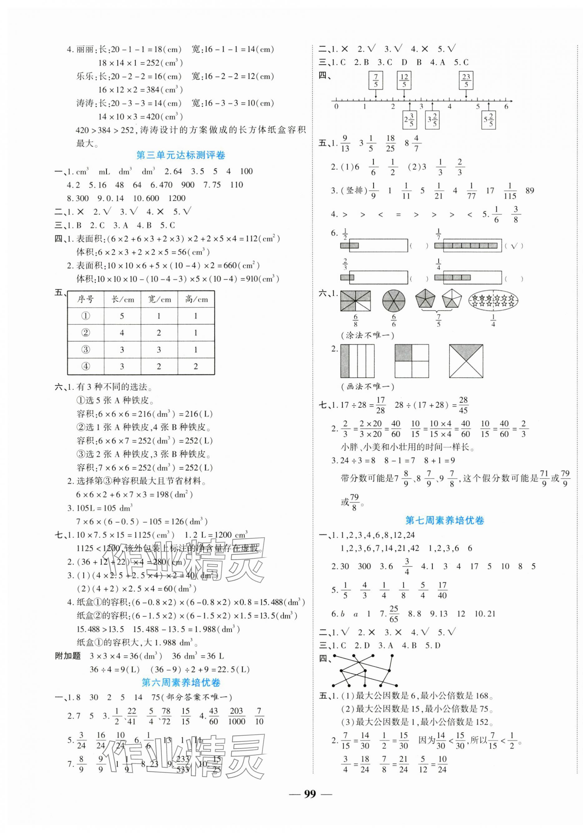 注:目前有些书本章节名称可能整理的还不是很完善,但都是按照顺序排列的,请同学们按照顺序仔细查找。练习册 2025年金优教辅全能练考卷五年级数学下册人教版 答案主要是用来给同学们做完题方便对答案用的,请勿直接抄袭。
