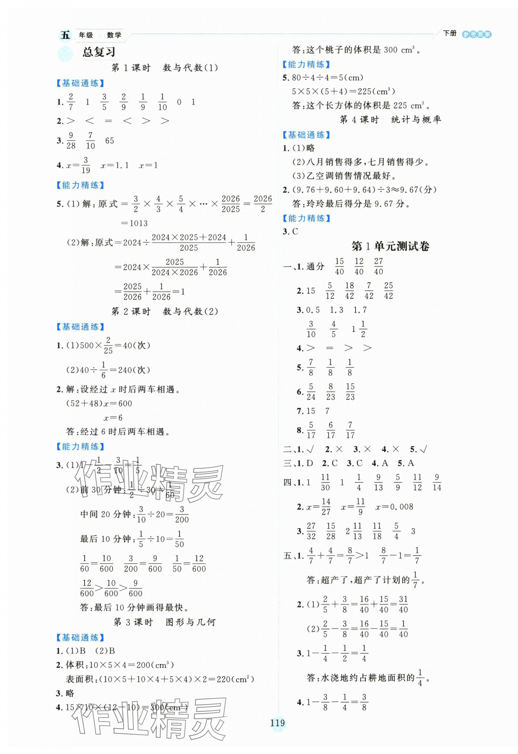 注:目前有些书本章节名称可能整理的还不是很完善,但都是按照顺序排列的,请同学们按照顺序仔细查找。练习册 2025年优秀生作业本五年级数学下册北师大版 答案主要是用来给同学们做完题方便对答案用的,请勿直接抄袭。