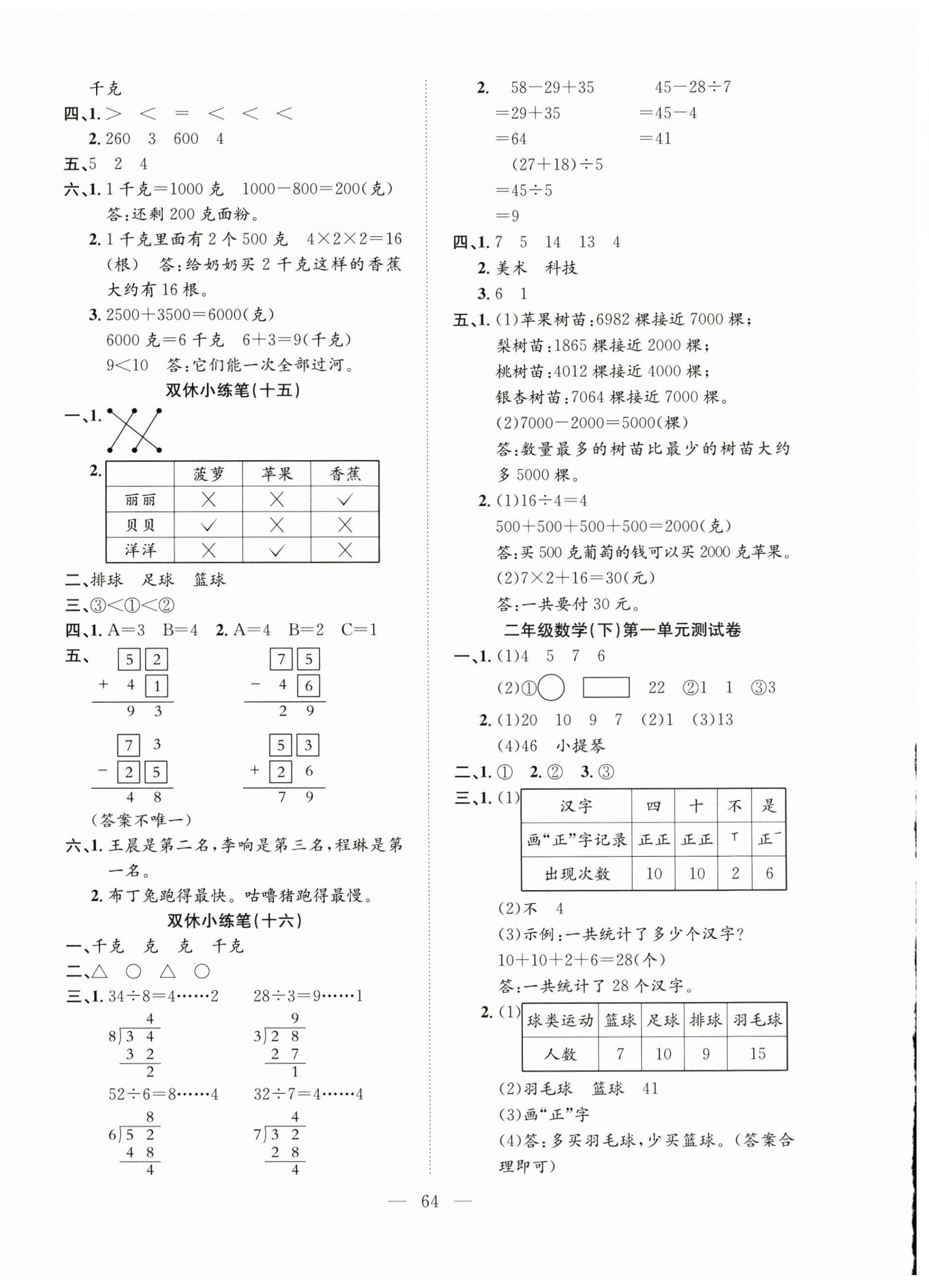 注:目前有些书本章节名称可能整理的还不是很完善,但都是按照顺序排列的,请同学们按照顺序仔细查找。练习册 2025年阳光全优大考卷二年级数学下册人教版 答案主要是用来给同学们做完题方便对答案用的,请勿直接抄袭。