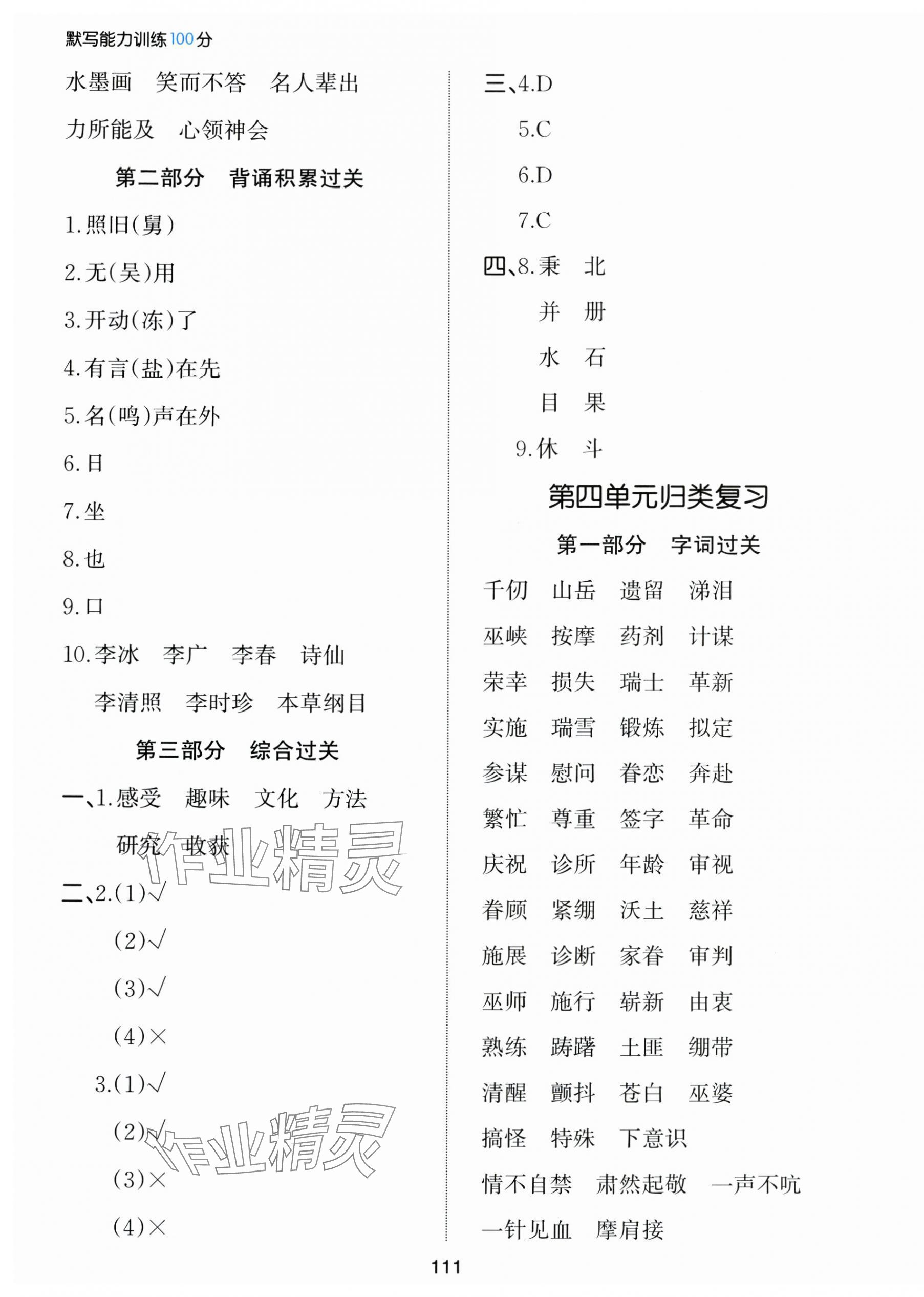 注:目前有些书本章节名称可能整理的还不是很完善,但都是按照顺序排列的,请同学们按照顺序仔细查找。练习册 2025年一本默写能力训练100分五年级下册人教版 答案主要是用来给同学们做完题方便对答案用的,请勿直接抄袭。