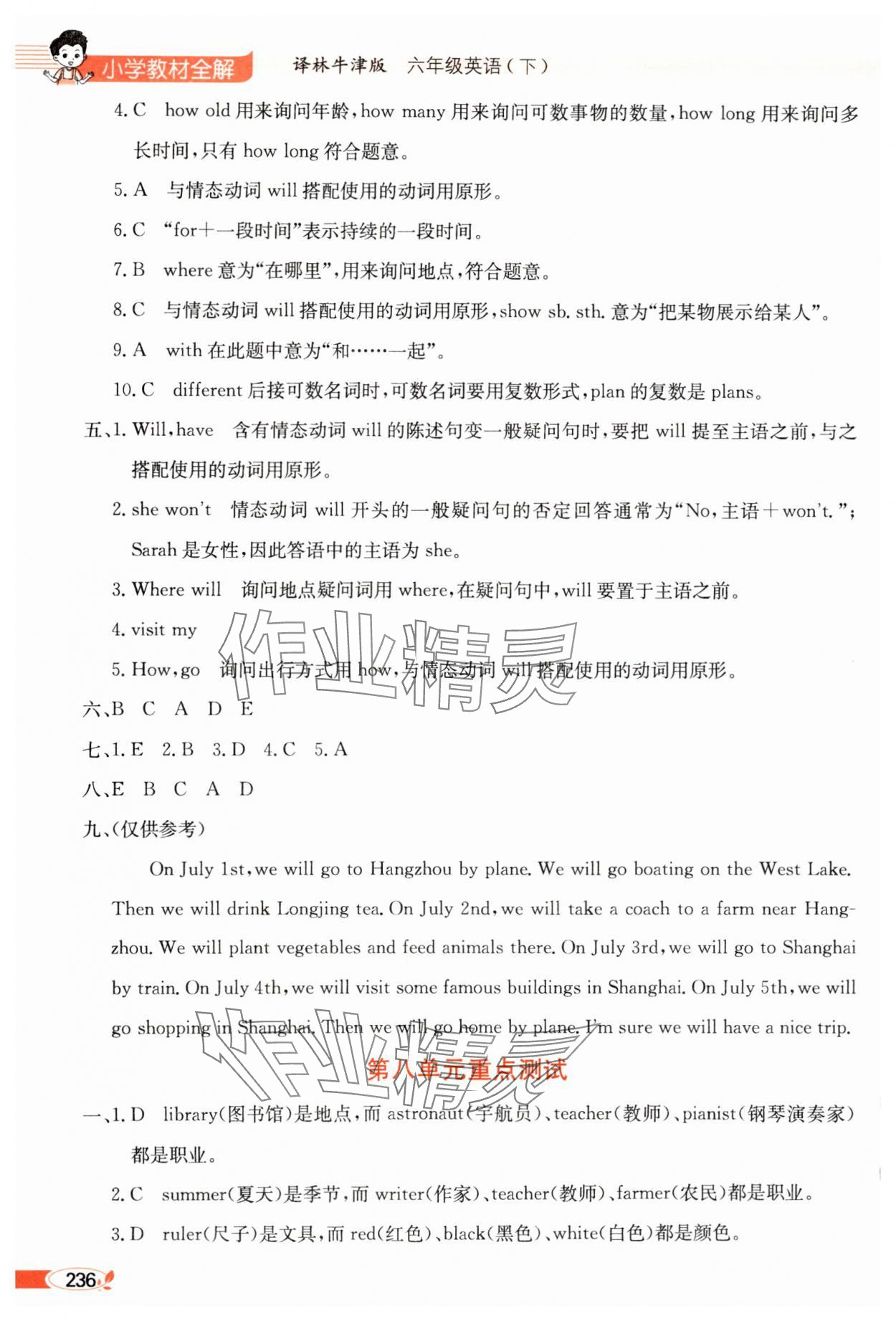注:目前有些书本章节名称可能整理的还不是很完善,但都是按照顺序排列的,请同学们按照顺序仔细查找。练习册 2025年教材全解六年级英语下册译林版 答案主要是用来给同学们做完题方便对答案用的,请勿直接抄袭。