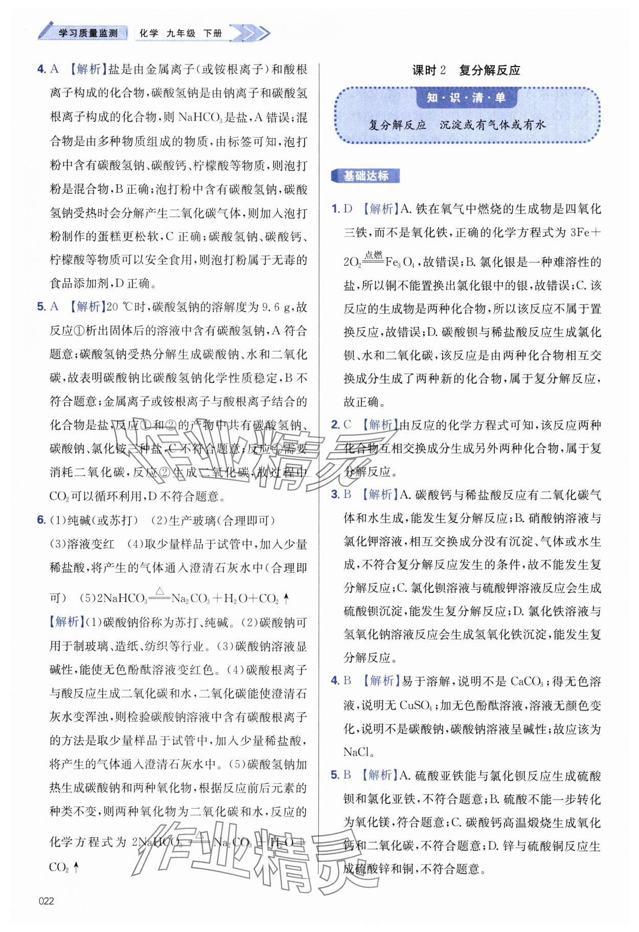 注:目前有些书本章节名称可能整理的还不是很完善,但都是按照顺序排列的,请同学们按照顺序仔细查找。练习册 2025年学习质量监测九年级化学下册人教版 答案主要是用来给同学们做完题方便对答案用的,请勿直接抄袭。
