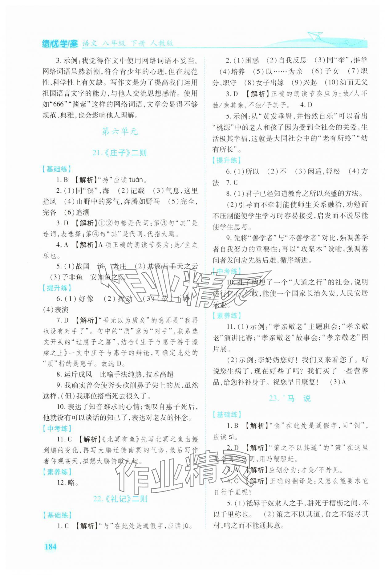 注:目前有些书本章节名称可能整理的还不是很完善,但都是按照顺序排列的,请同学们按照顺序仔细查找。练习册 2025年绩优学案八年级语文下册人教版 答案主要是用来给同学们做完题方便对答案用的,请勿直接抄袭。