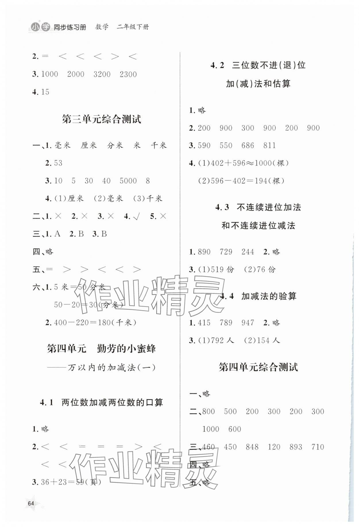 注:目前有些书本章节名称可能整理的还不是很完善,但都是按照顺序排列的,请同学们按照顺序仔细查找。练习册 2025年小学同步练习册山东人民出版社二年级数学下册青岛版 答案主要是用来给同学们做完题方便对答案用的,请勿直接抄袭。