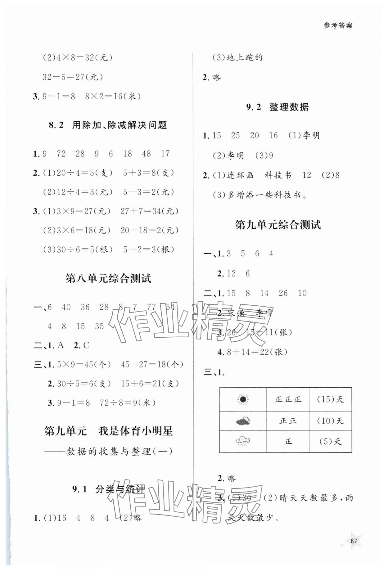 注:目前有些书本章节名称可能整理的还不是很完善,但都是按照顺序排列的,请同学们按照顺序仔细查找。练习册 2025年小学同步练习册山东人民出版社二年级数学下册青岛版 答案主要是用来给同学们做完题方便对答案用的,请勿直接抄袭。