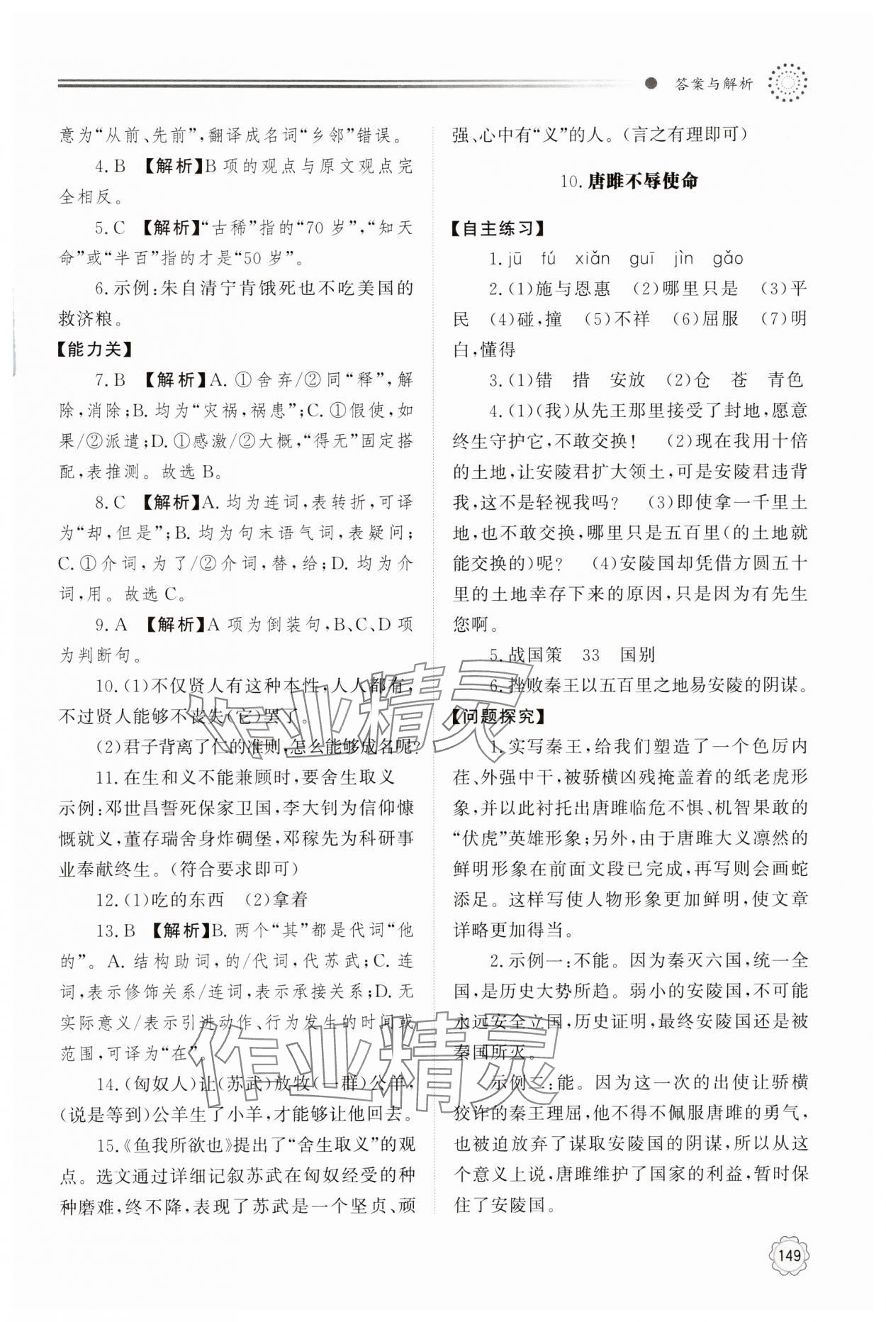 注:目前有些书本章节名称可能整理的还不是很完善,但都是按照顺序排列的,请同学们按照顺序仔细查找。练习册 2025年初中同步练习册明天出版社九年级语文下册人教版 答案主要是用来给同学们做完题方便对答案用的,请勿直接抄袭。