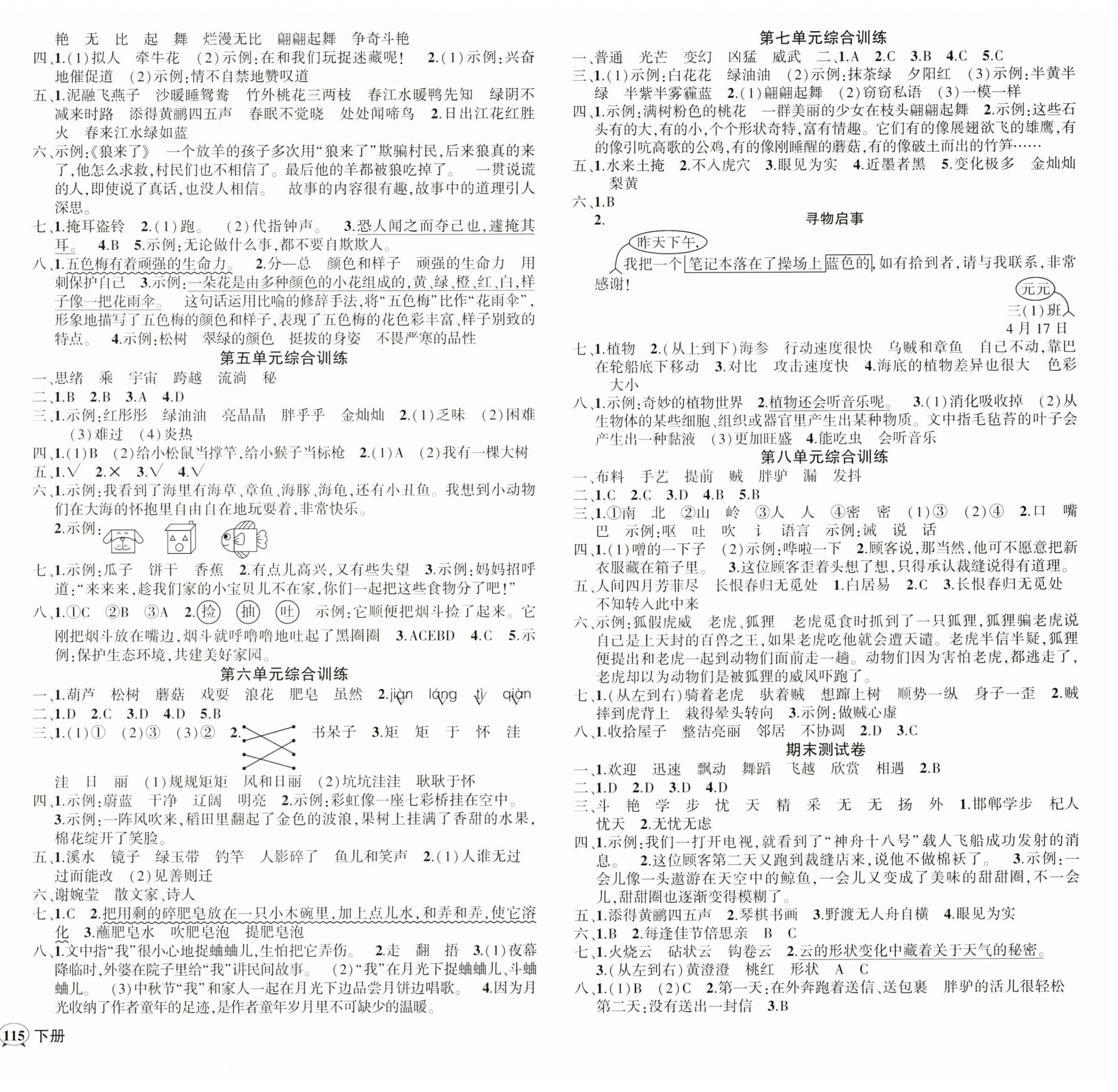注:目前有些书本章节名称可能整理的还不是很完善,但都是按照顺序排列的,请同学们按照顺序仔细查找。练习册 2025年状元成才路创优作业100分三年级语文下册人教版四川专版 答案主要是用来给同学们做完题方便对答案用的,请勿直接抄袭。
