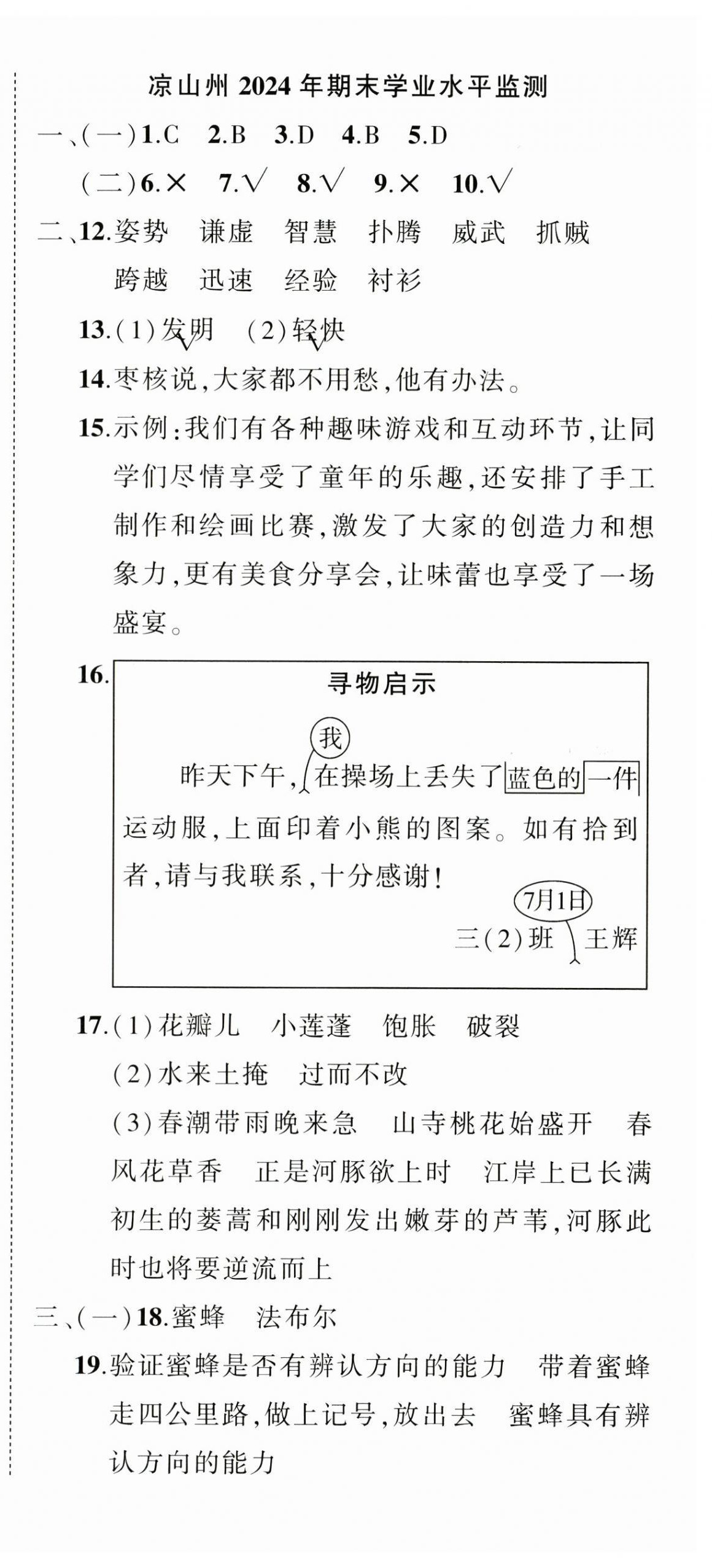 注:目前有些书本章节名称可能整理的还不是很完善,但都是按照顺序排列的,请同学们按照顺序仔细查找。练习册 2025年状元成才路创优作业100分三年级语文下册人教版四川专版 答案主要是用来给同学们做完题方便对答案用的,请勿直接抄袭。
