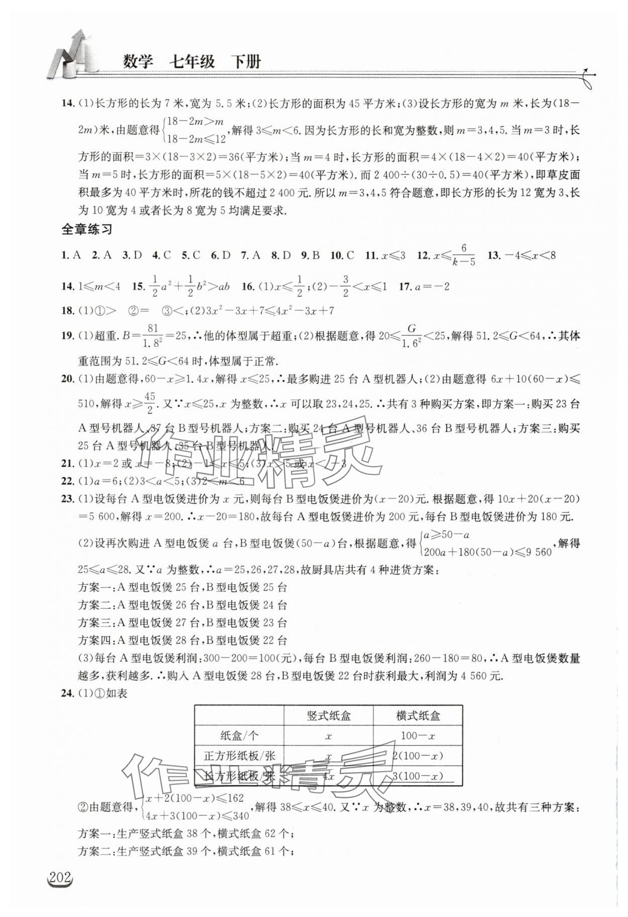 注:目前有些书本章节名称可能整理的还不是很完善,但都是按照顺序排列的,请同学们按照顺序仔细查找。练习册 2025年长江作业本同步练习册七年级数学下册人教版 答案主要是用来给同学们做完题方便对答案用的,请勿直接抄袭。