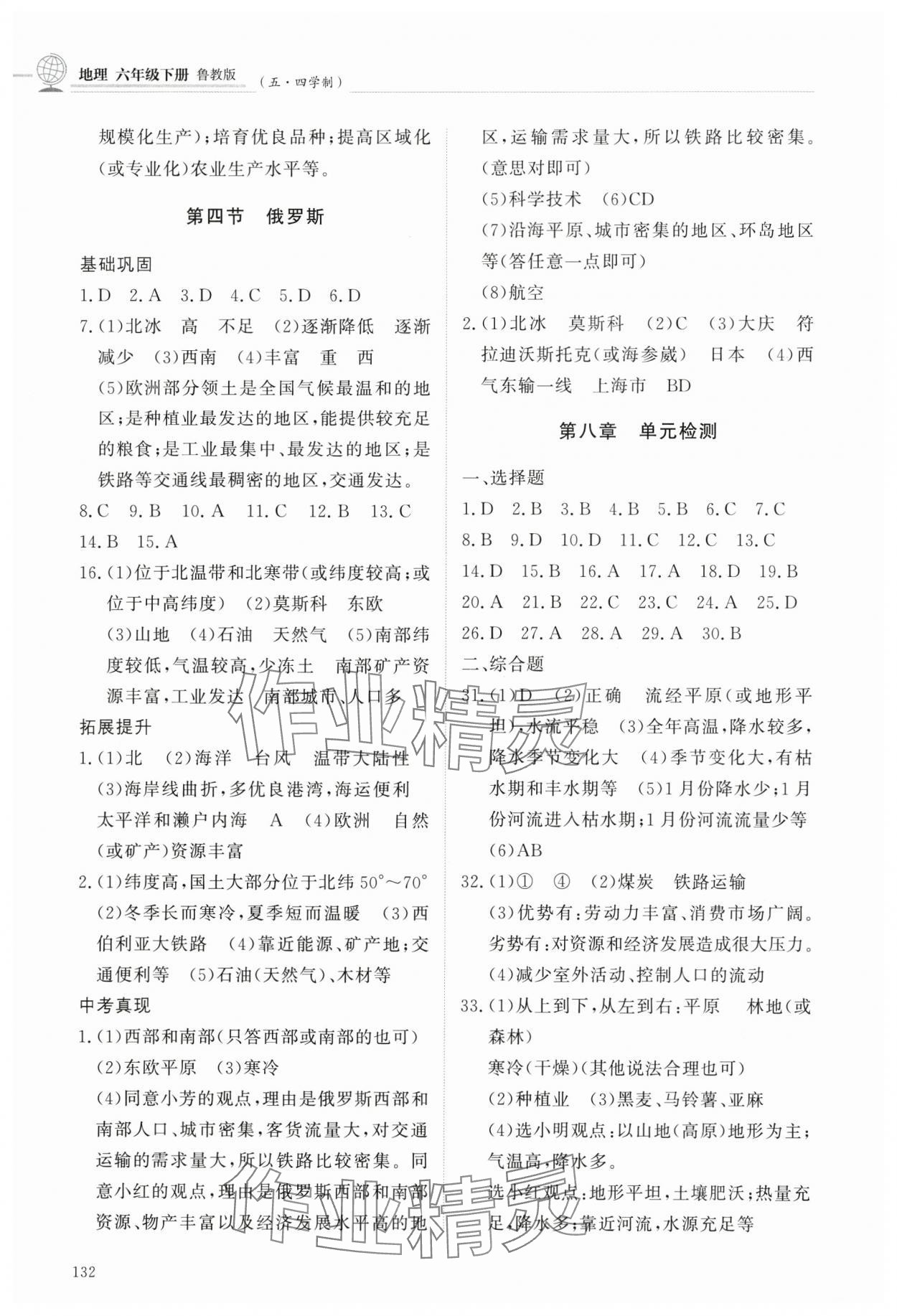 2025年同步练习册明天出版社六年级地理下册鲁教版五四制