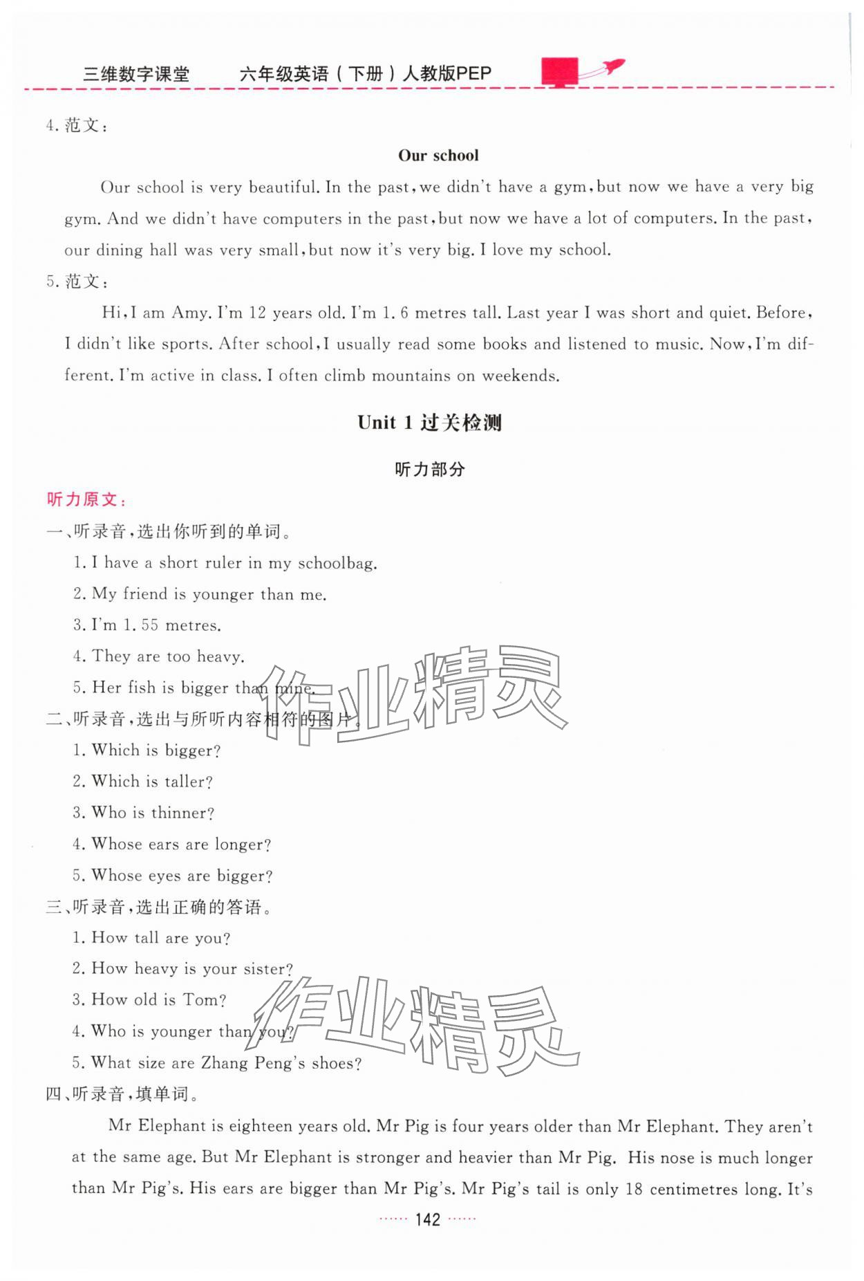 注:目前有些书本章节名称可能整理的还不是很完善,但都是按照顺序排列的,请同学们按照顺序仔细查找。练习册 2025年三维数字课堂六年级英语下册人教版 答案主要是用来给同学们做完题方便对答案用的,请勿直接抄袭。