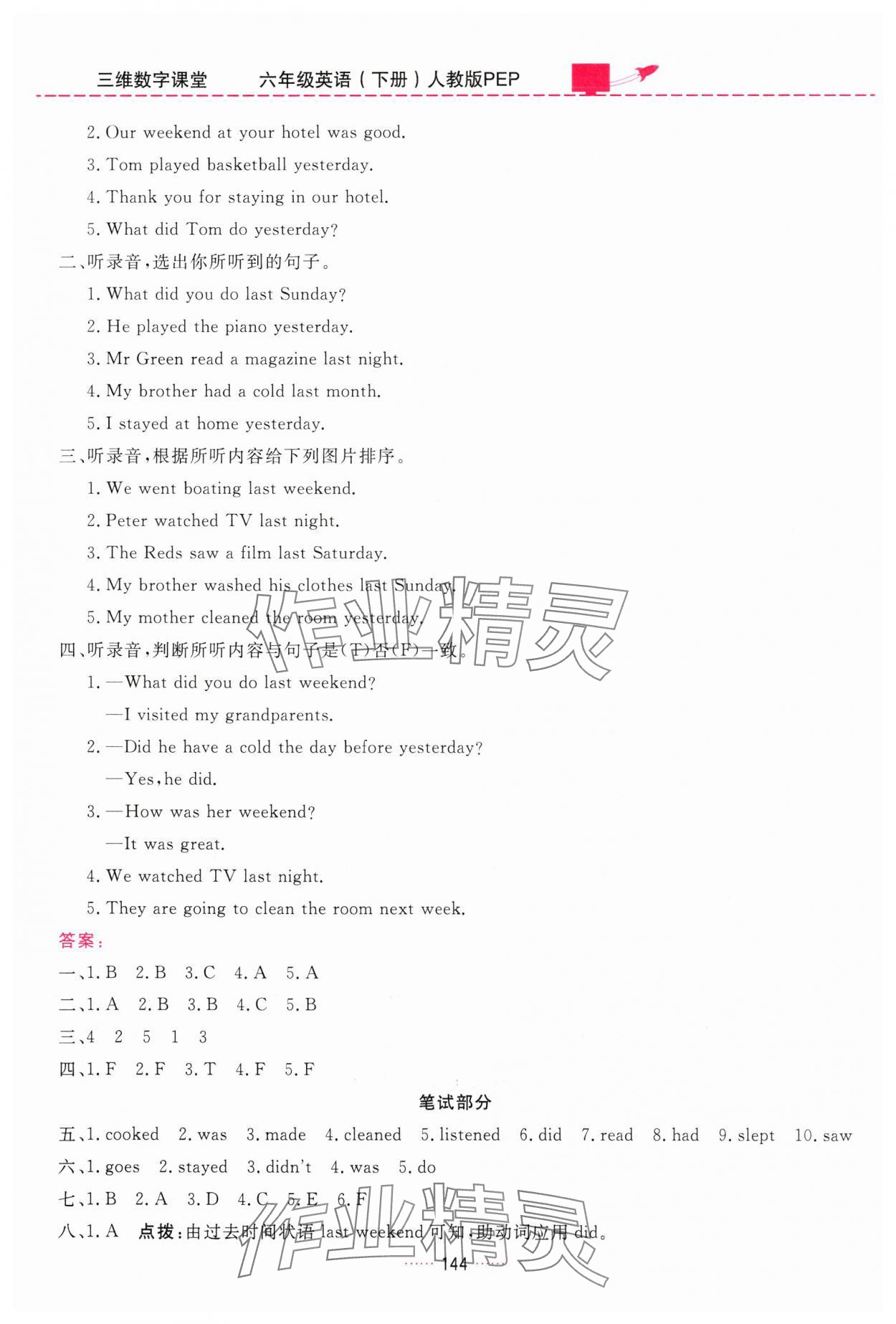注:目前有些书本章节名称可能整理的还不是很完善,但都是按照顺序排列的,请同学们按照顺序仔细查找。练习册 2025年三维数字课堂六年级英语下册人教版 答案主要是用来给同学们做完题方便对答案用的,请勿直接抄袭。