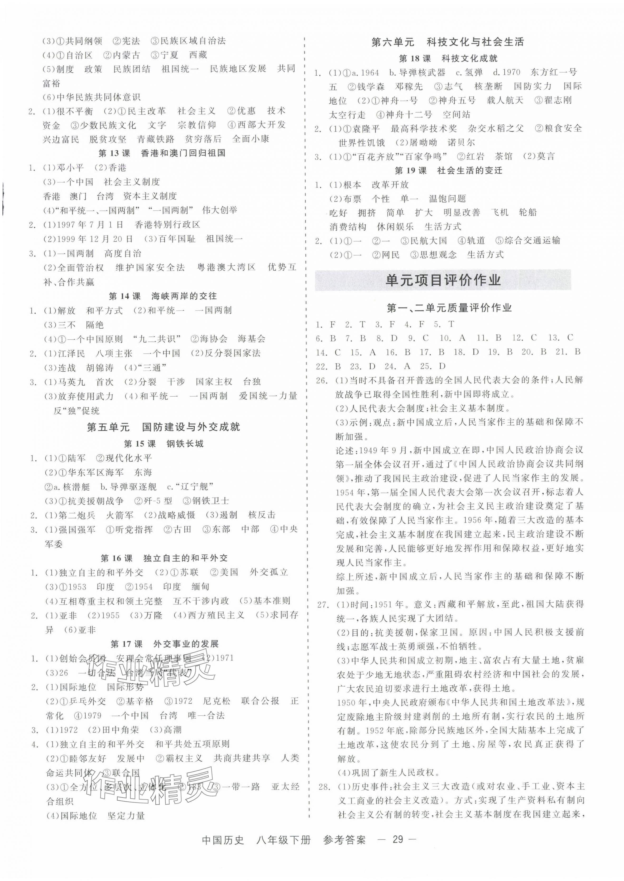 注:目前有些书本章节名称可能整理的还不是很完善,但都是按照顺序排列的,请同学们按照顺序仔细查找。练习册 2025年精彩三年就练这一本八年级中国历史下册人教版 答案主要是用来给同学们做完题方便对答案用的,请勿直接抄袭。