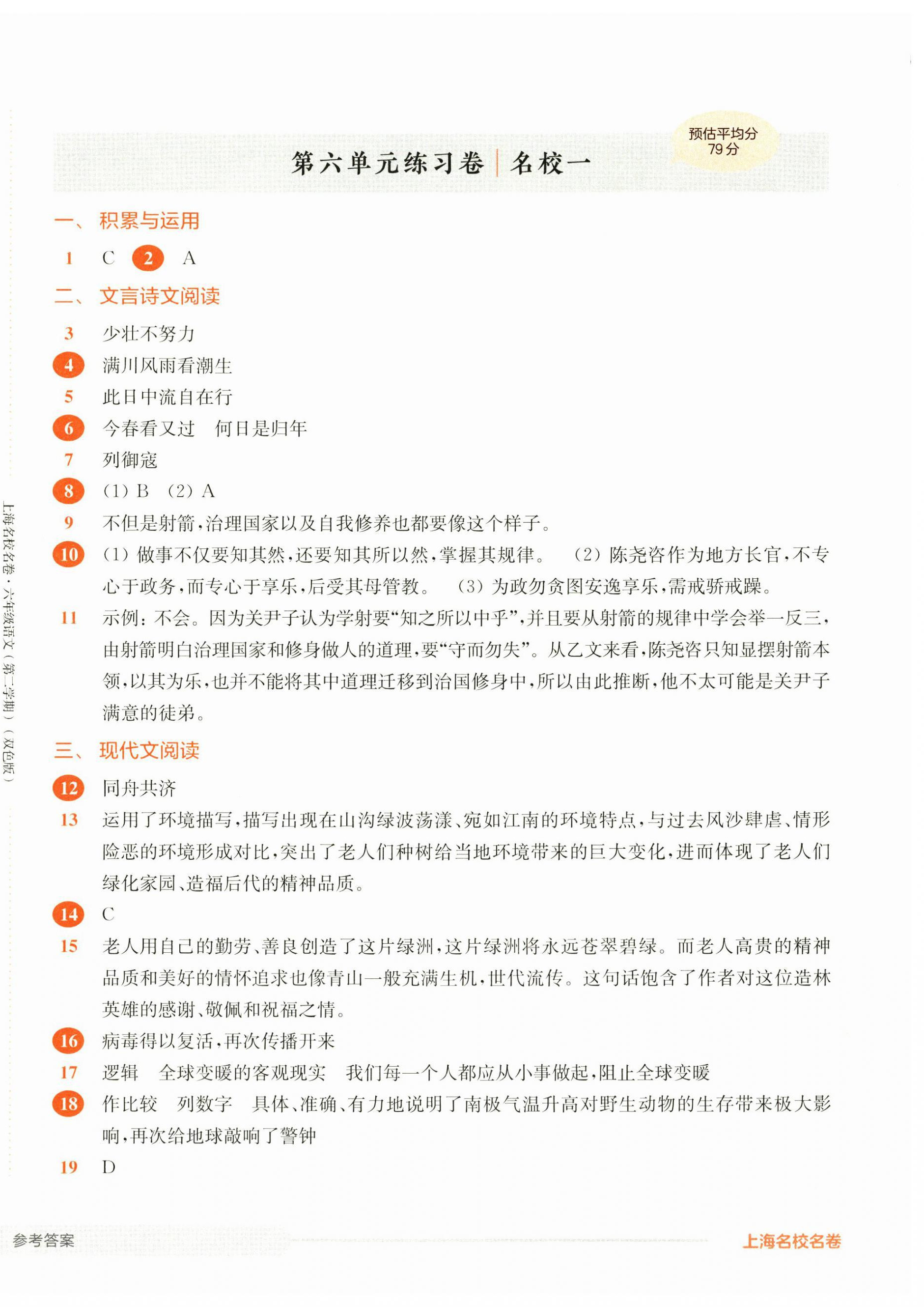 注:目前有些书本章节名称可能整理的还不是很完善,但都是按照顺序排列的,请同学们按照顺序仔细查找。练习册 2025年上海名校名卷六年级语文下册人教版五四制 答案主要是用来给同学们做完题方便对答案用的,请勿直接抄袭。