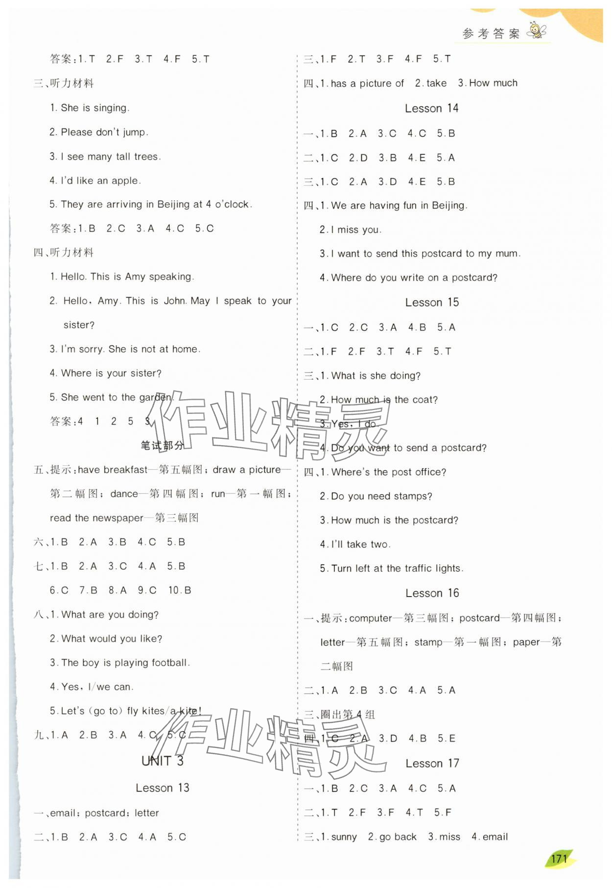 注:目前有些书本章节名称可能整理的还不是很完善,但都是按照顺序排列的,请同学们按照顺序仔细查找。练习册 2025年七彩课堂五年级英语下册冀教版 答案主要是用来给同学们做完题方便对答案用的,请勿直接抄袭。