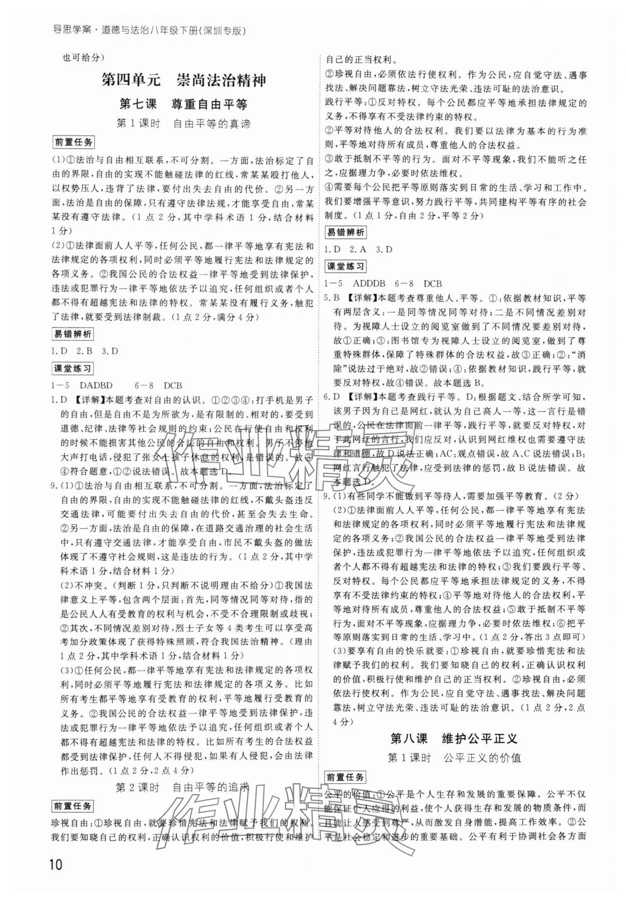 注:目前有些书本章节名称可能整理的还不是很完善,但都是按照顺序排列的,请同学们按照顺序仔细查找。练习册 2025年导思学案八年级道德与法治下册人教版深圳专版 答案主要是用来给同学们做完题方便对答案用的,请勿直接抄袭。