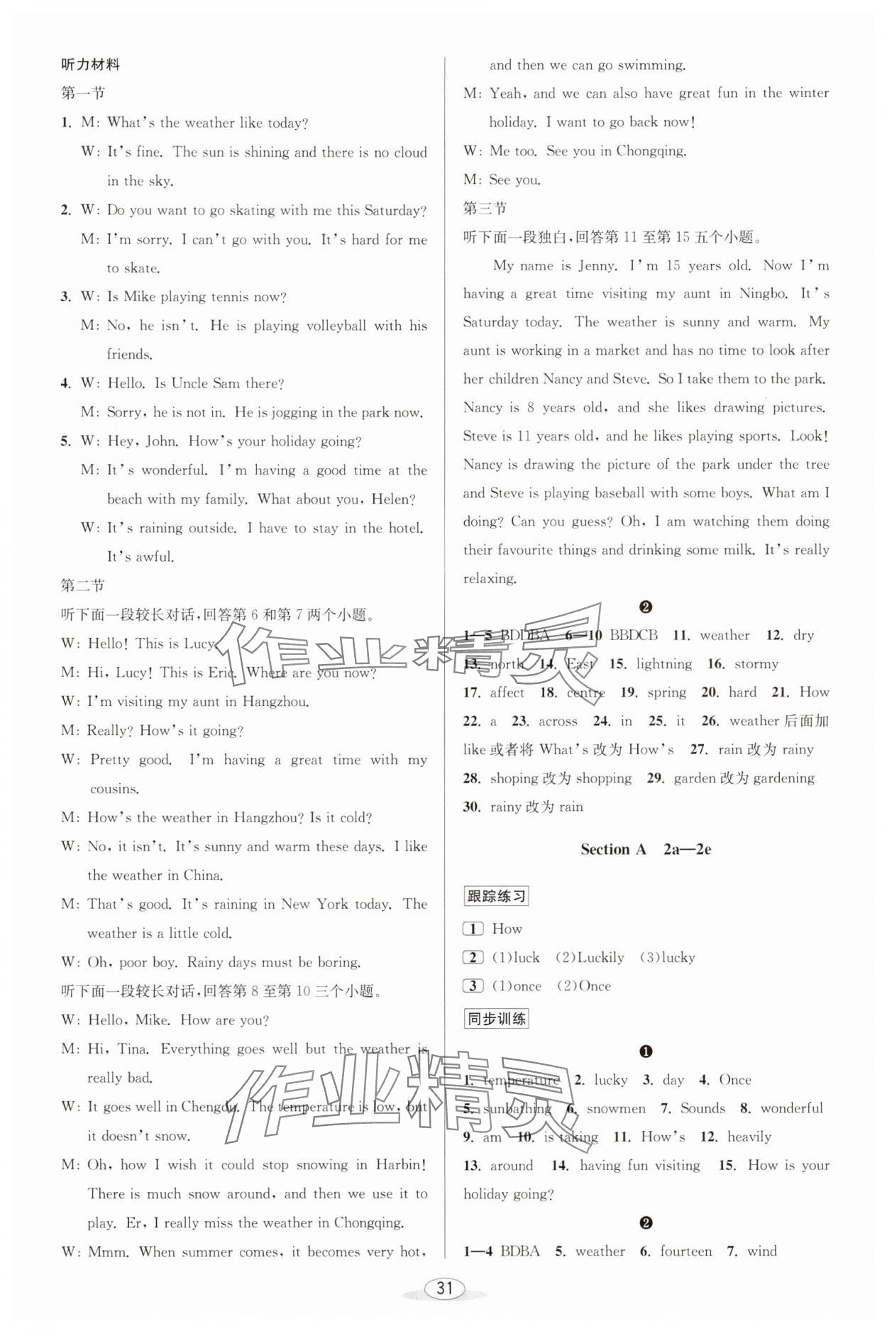 注:目前有些书本章节名称可能整理的还不是很完善,但都是按照顺序排列的,请同学们按照顺序仔细查找。练习册 2025年教与学课程同步讲练七年级英语下册人教版 答案主要是用来给同学们做完题方便对答案用的,请勿直接抄袭。