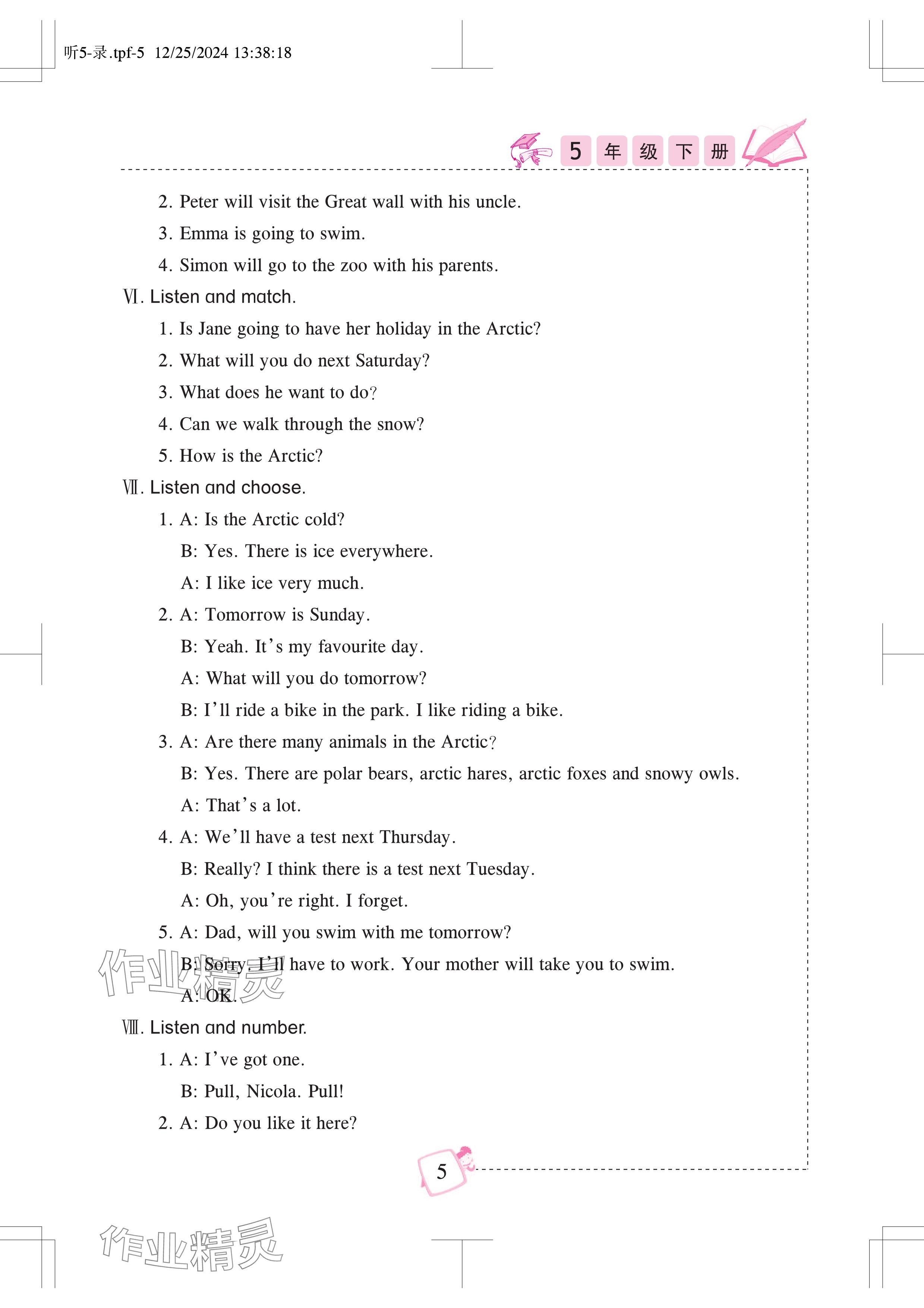 2025年小学英语听力训练武汉出版社五年级下册Join in