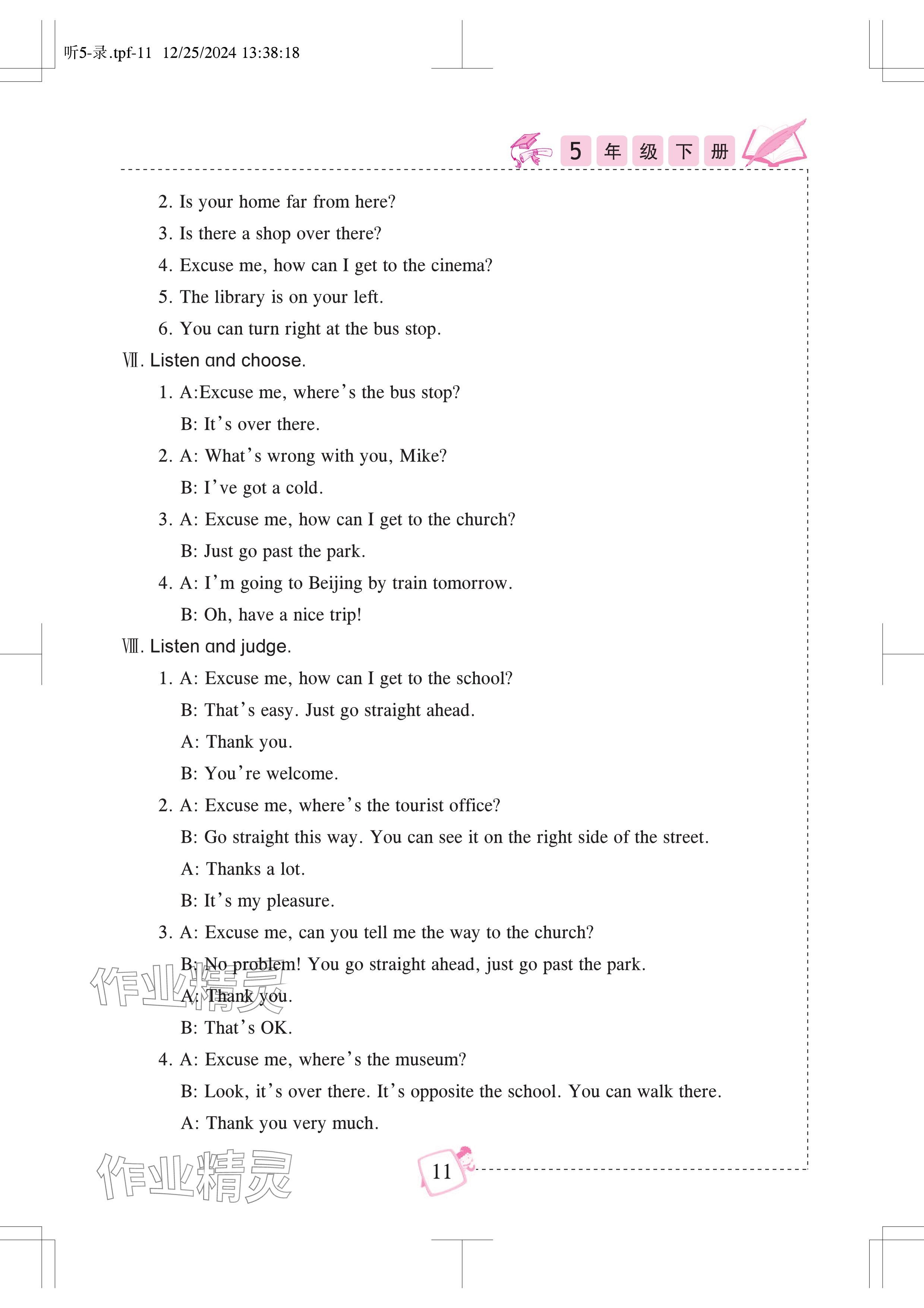 2025年小学英语听力训练武汉出版社五年级下册Join in
