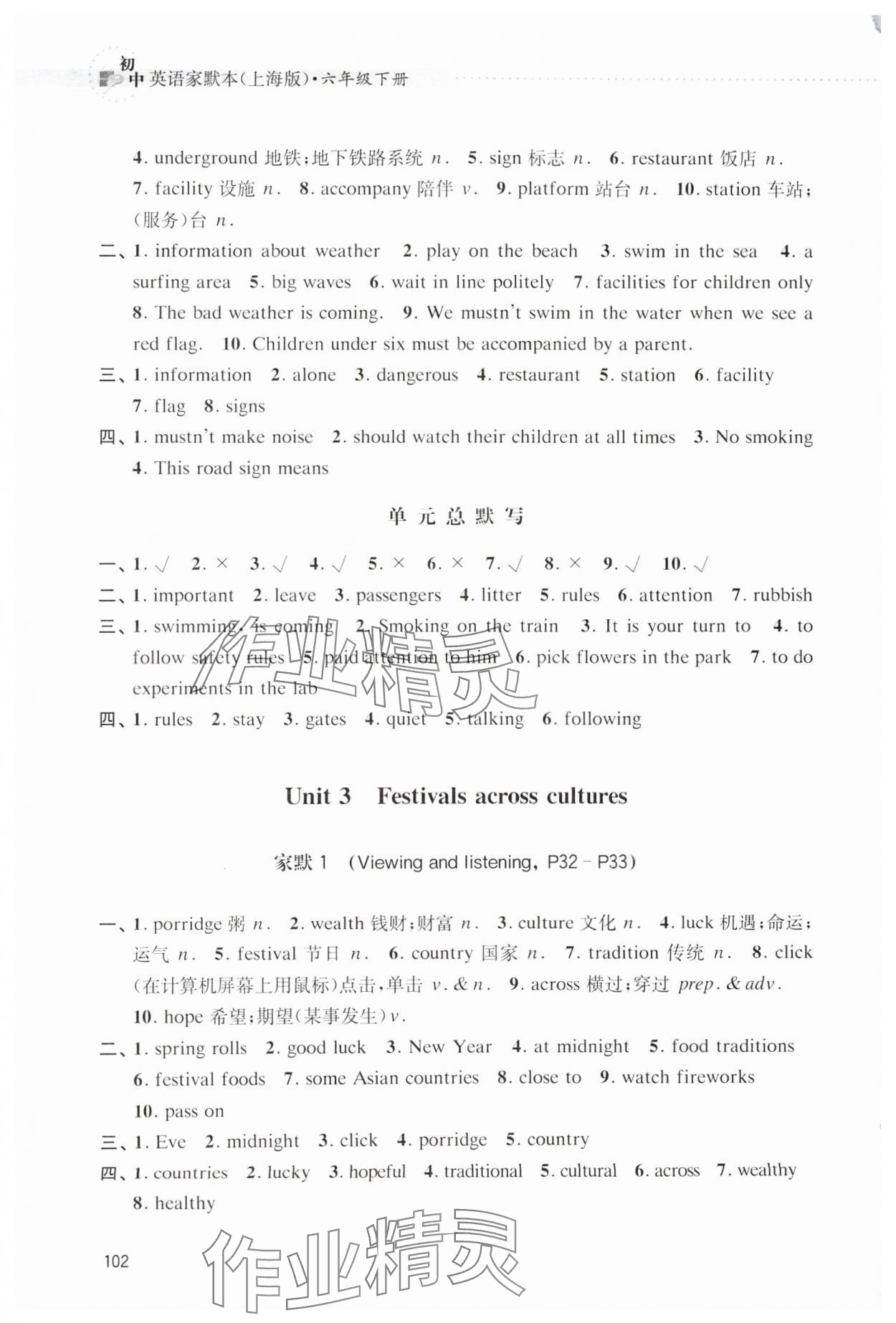 注:目前有些书本章节名称可能整理的还不是很完善,但都是按照顺序排列的,请同学们按照顺序仔细查找。练习册 2025年牛津英语家默本六年级英语下册沪教版五四制 答案主要是用来给同学们做完题方便对答案用的,请勿直接抄袭。