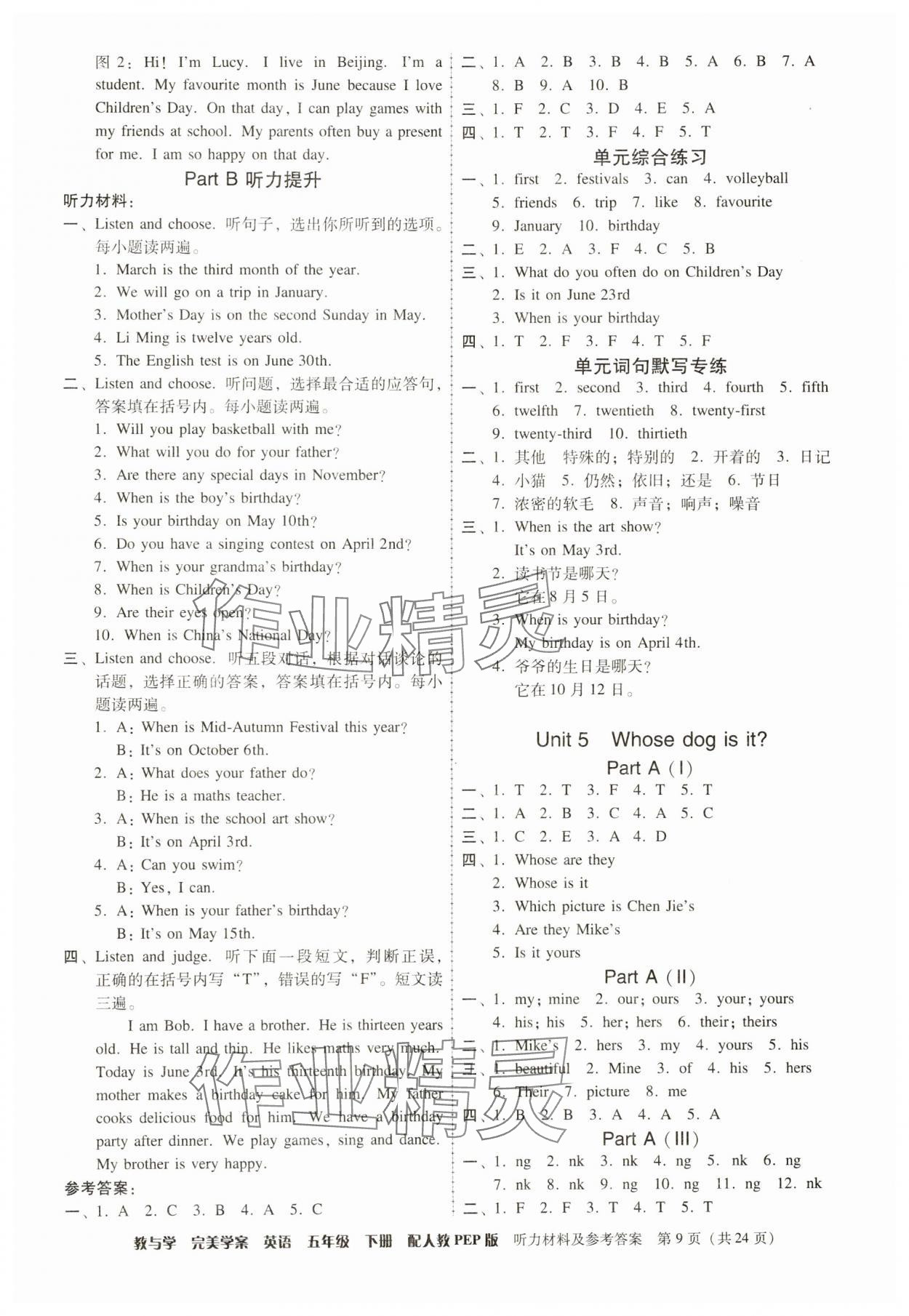 注:目前有些书本章节名称可能整理的还不是很完善,但都是按照顺序排列的,请同学们按照顺序仔细查找。练习册 2025年完美学案五年级英语下册人教版 答案主要是用来给同学们做完题方便对答案用的,请勿直接抄袭。