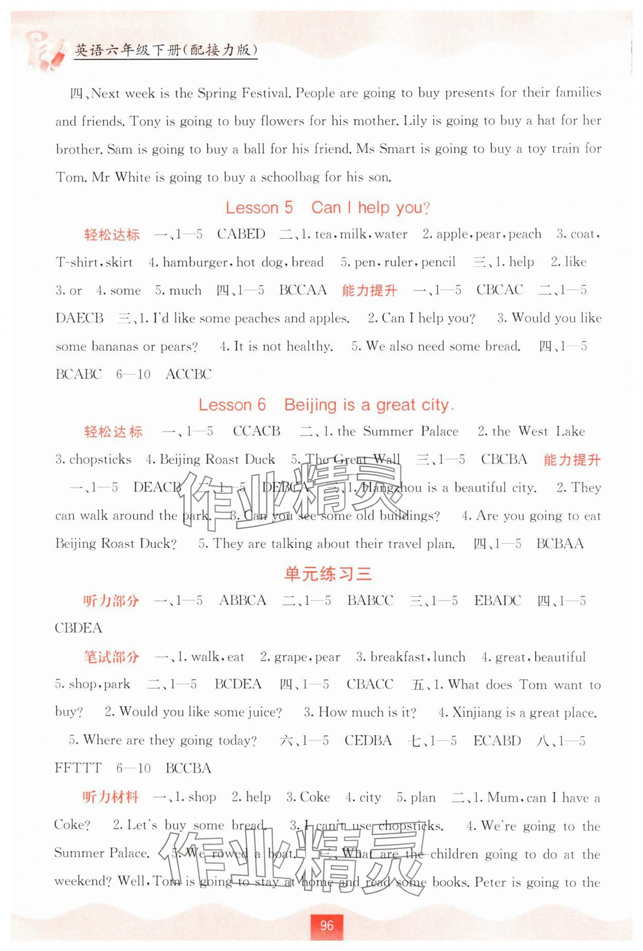 注:目前有些书本章节名称可能整理的还不是很完善,但都是按照顺序排列的,请同学们按照顺序仔细查找。练习册 2025年自主学习能力测评六年级英语下册接力版 答案主要是用来给同学们做完题方便对答案用的,请勿直接抄袭。
