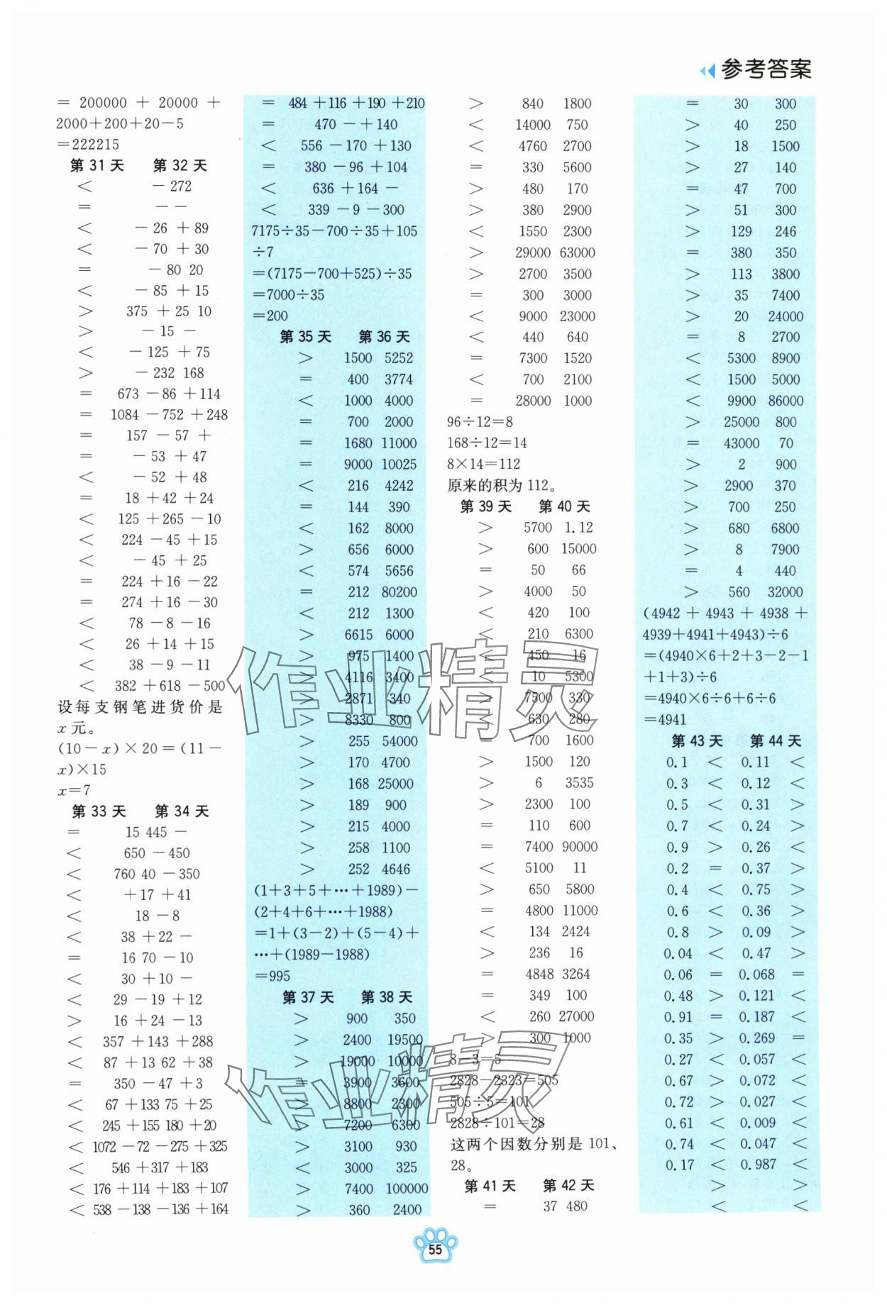 注:目前有些书本章节名称可能整理的还不是很完善,但都是按照顺序排列的,请同学们按照顺序仔细查找。练习册 2025年每日6分钟口算10000题四年级数学下册人教版 答案主要是用来给同学们做完题方便对答案用的,请勿直接抄袭。