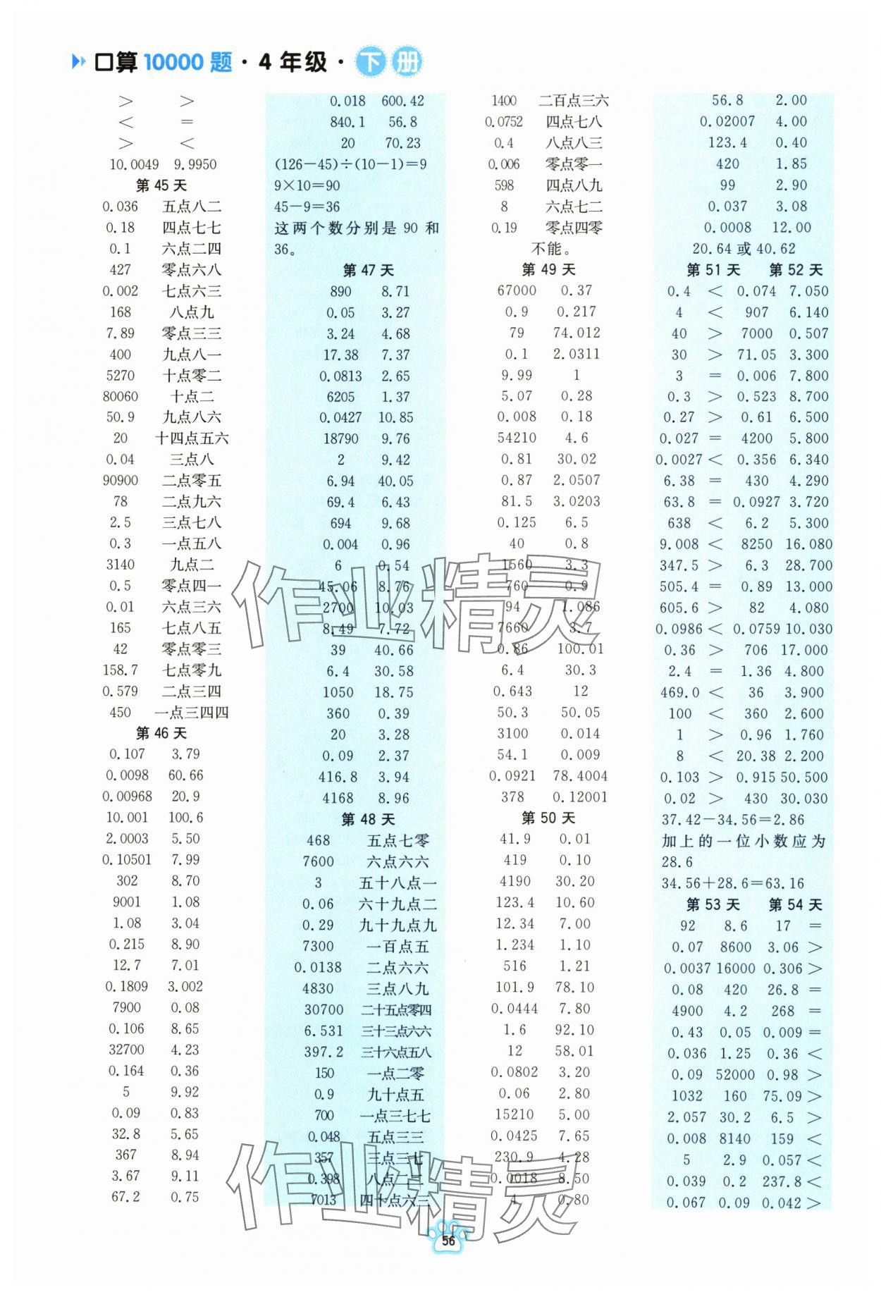 注:目前有些书本章节名称可能整理的还不是很完善,但都是按照顺序排列的,请同学们按照顺序仔细查找。练习册 2025年每日6分钟口算10000题四年级数学下册人教版 答案主要是用来给同学们做完题方便对答案用的,请勿直接抄袭。