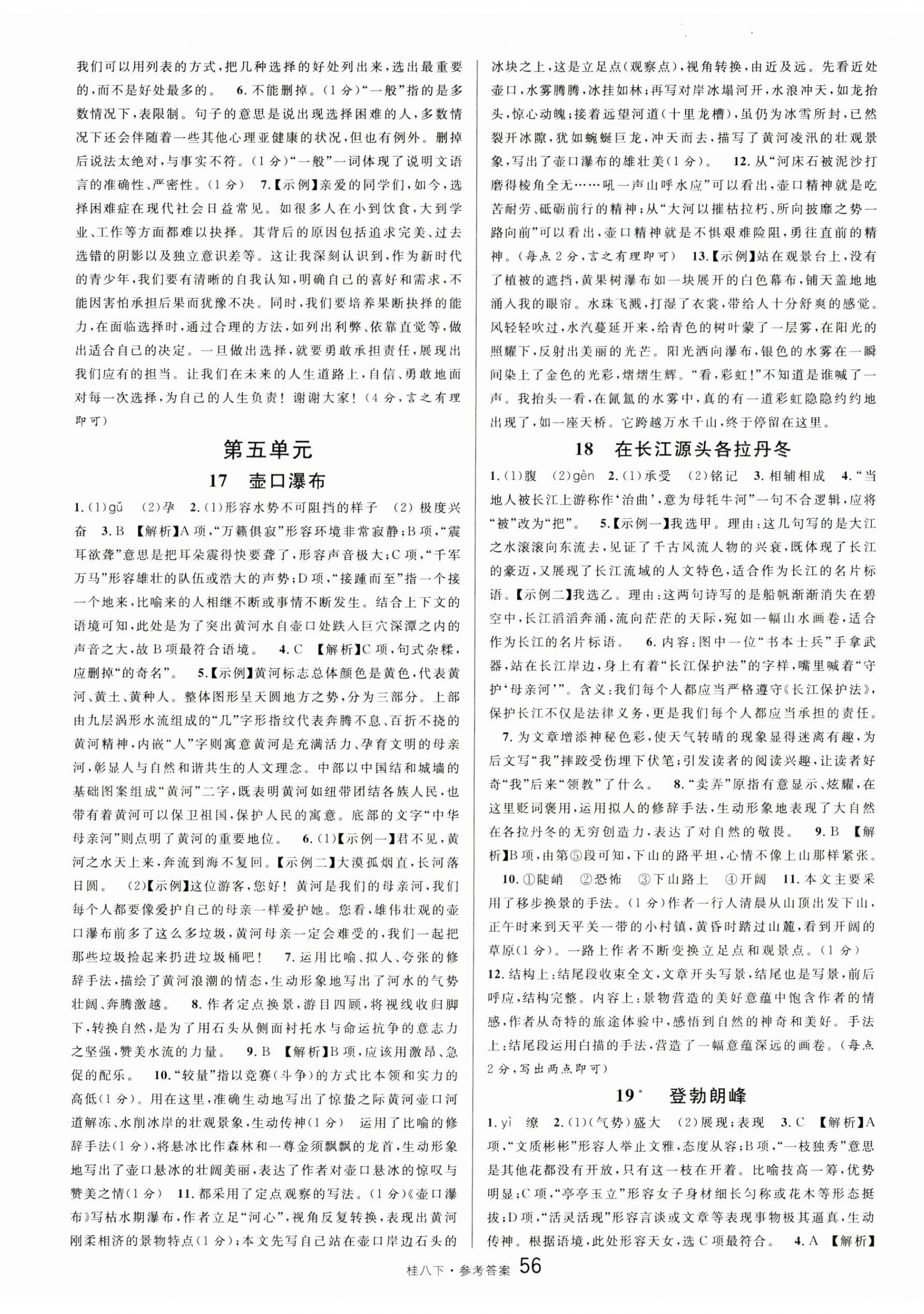 注:目前有些书本章节名称可能整理的还不是很完善,但都是按照顺序排列的,请同学们按照顺序仔细查找。练习册 2025年名校课堂八年级语文下册人教版广西专版 答案主要是用来给同学们做完题方便对答案用的,请勿直接抄袭。