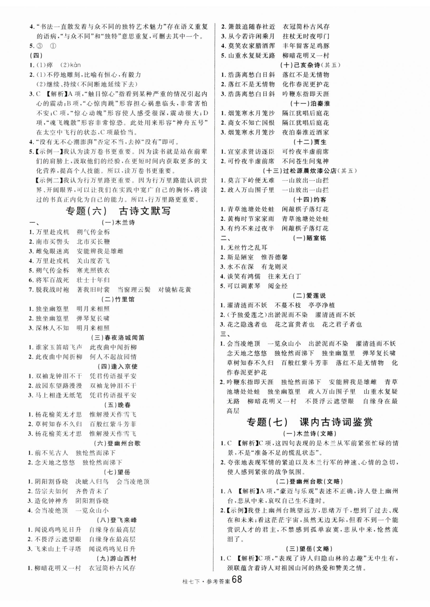 注:目前有些书本章节名称可能整理的还不是很完善,但都是按照顺序排列的,请同学们按照顺序仔细查找。练习册 2025年名校课堂七年级语文下册人教版广西专版 答案主要是用来给同学们做完题方便对答案用的,请勿直接抄袭。