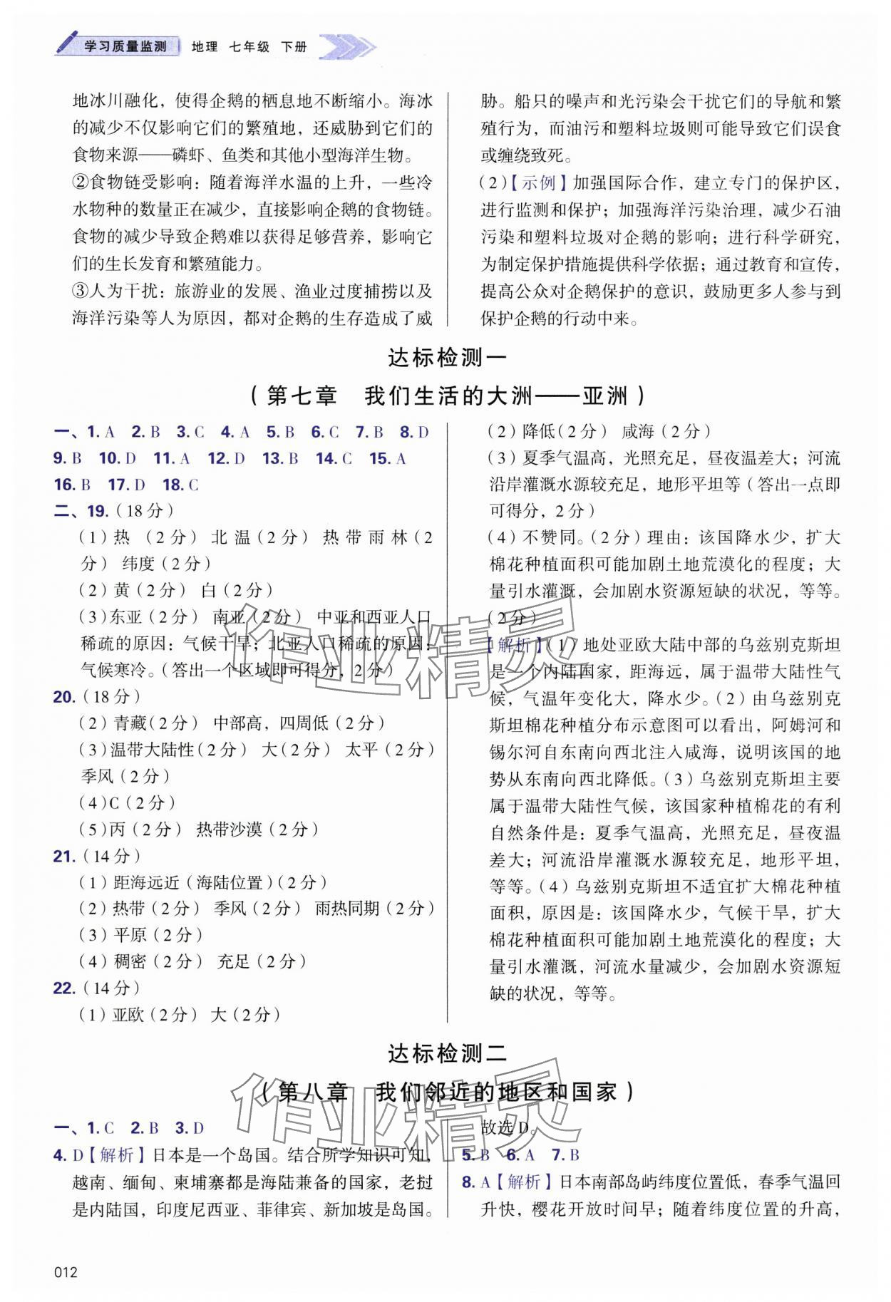 注:目前有些书本章节名称可能整理的还不是很完善,但都是按照顺序排列的,请同学们按照顺序仔细查找。练习册 2025年学习质量监测七年级地理下册人教版 答案主要是用来给同学们做完题方便对答案用的,请勿直接抄袭。