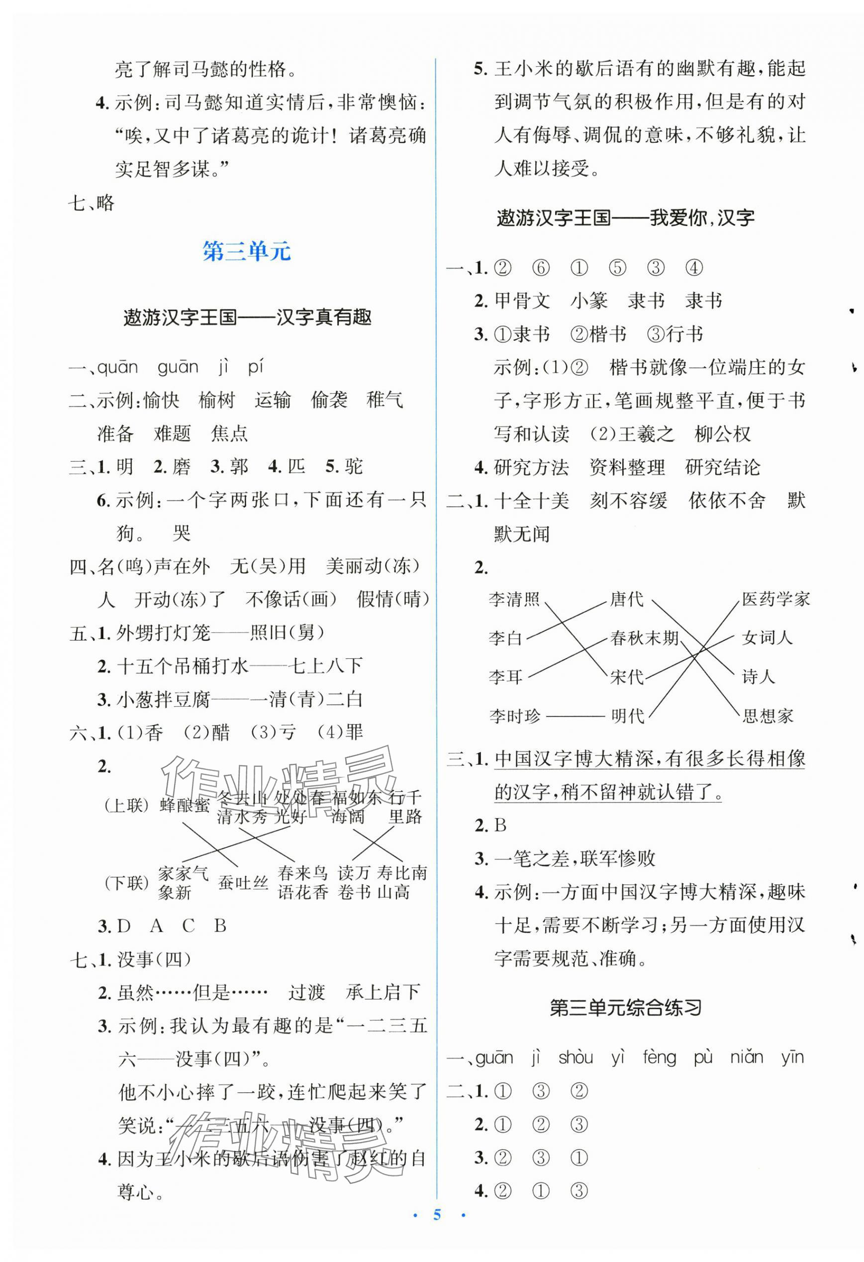 注:目前有些书本章节名称可能整理的还不是很完善,但都是按照顺序排列的,请同学们按照顺序仔细查找。练习册 2025年同步解析与测评学考练五年级语文下册人教版 答案主要是用来给同学们做完题方便对答案用的,请勿直接抄袭。