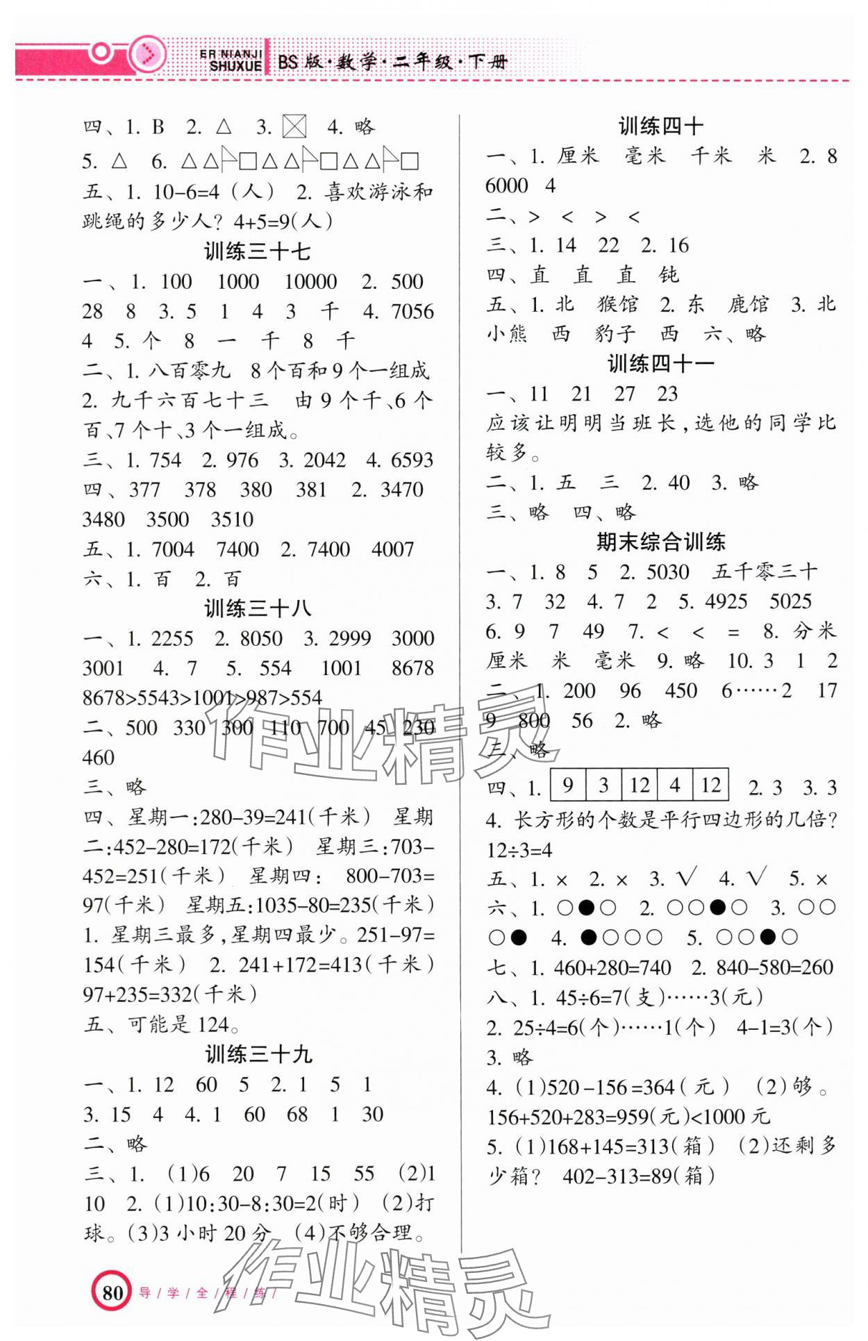注:目前有些书本章节名称可能整理的还不是很完善,但都是按照顺序排列的,请同学们按照顺序仔细查找。练习册 2025年导学全程练创优训练二年级数学下册北师大版 答案主要是用来给同学们做完题方便对答案用的,请勿直接抄袭。