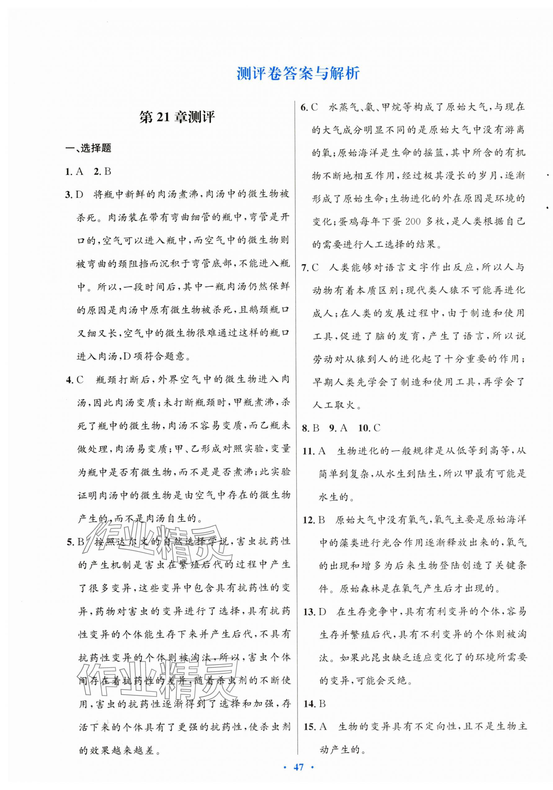 注:目前有些书本章节名称可能整理的还不是很完善,但都是按照顺序排列的,请同学们按照顺序仔细查找。练习册 2025年同步测控优化设计八年级生物下册北师大版重庆专版 答案主要是用来给同学们做完题方便对答案用的,请勿直接抄袭。