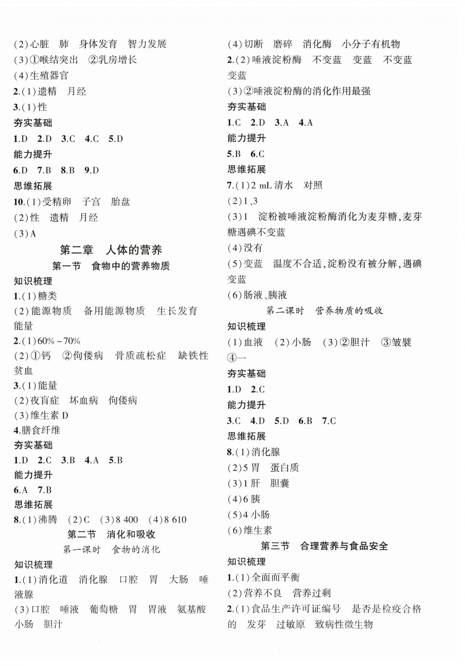 注:目前有些书本章节名称可能整理的还不是很完善,但都是按照顺序排列的,请同学们按照顺序仔细查找。练习册 2025年创新课堂创新作业本七年级生物下册人教版 答案主要是用来给同学们做完题方便对答案用的,请勿直接抄袭。