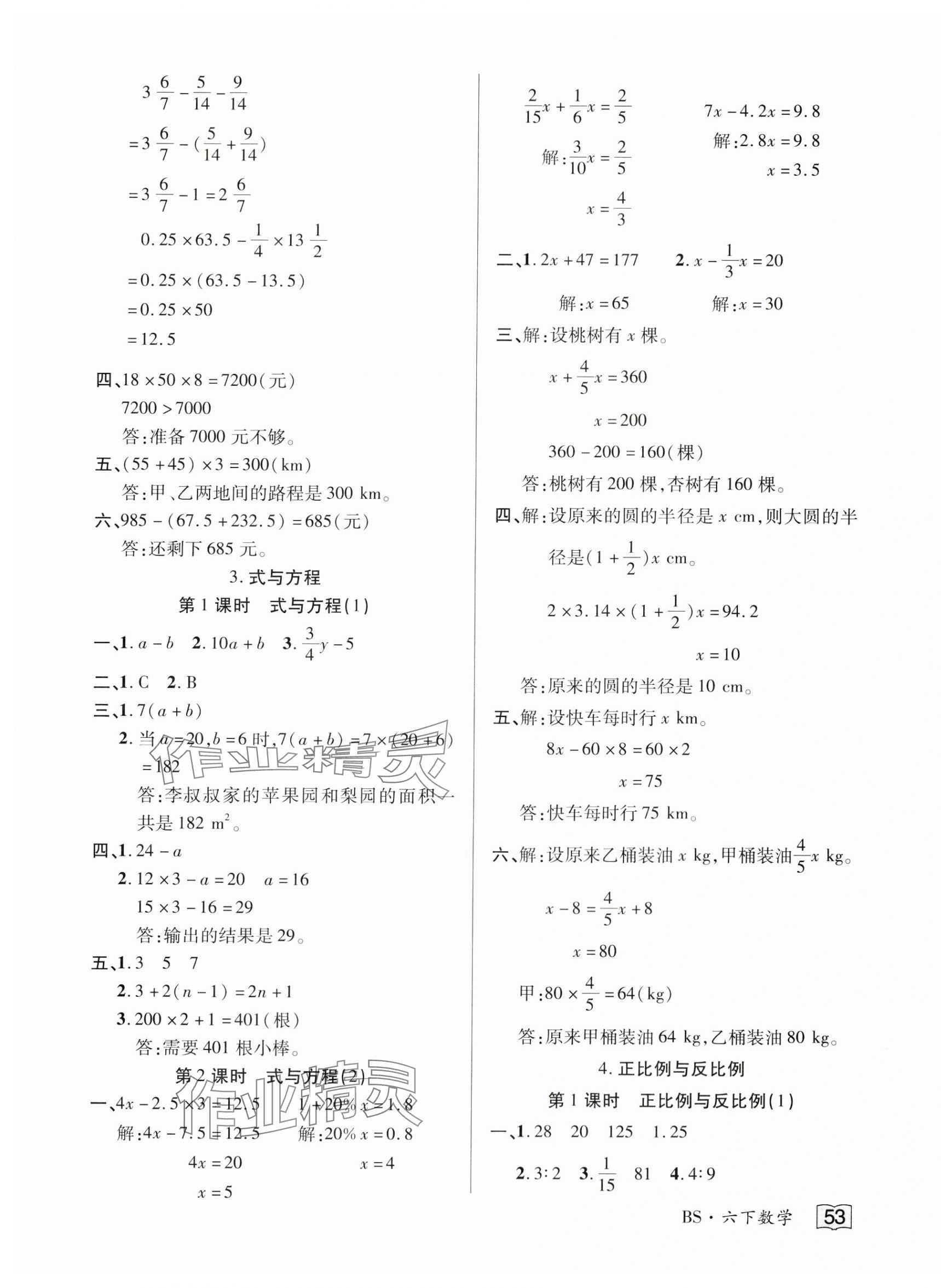 注:目前有些书本章节名称可能整理的还不是很完善,但都是按照顺序排列的,请同学们按照顺序仔细查找。练习册 2025年花儿与星星六年级数学下册北师大版 答案主要是用来给同学们做完题方便对答案用的,请勿直接抄袭。