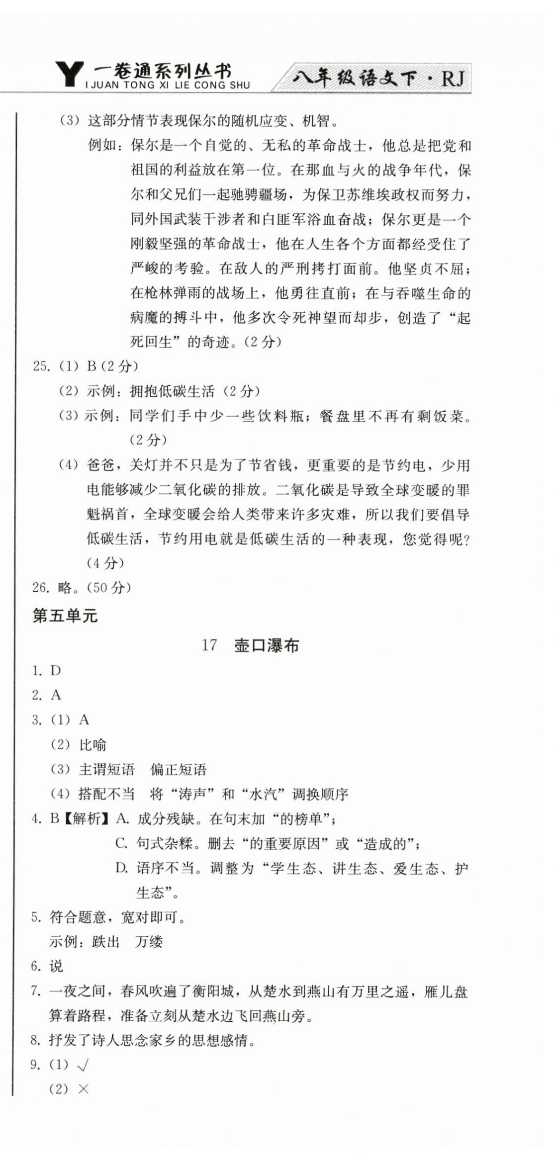 注:目前有些书本章节名称可能整理的还不是很完善,但都是按照顺序排列的,请同学们按照顺序仔细查找。练习册 2025年同步优化测试卷一卷通八年级语文下册人教版 答案主要是用来给同学们做完题方便对答案用的,请勿直接抄袭。