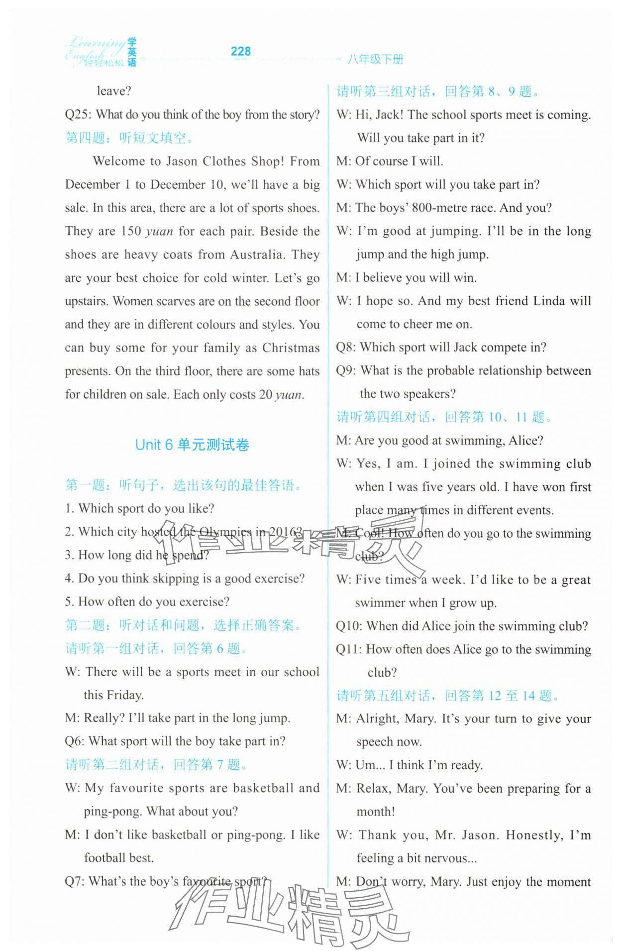 注:目前有些书本章节名称可能整理的还不是很完善,但都是按照顺序排列的,请同学们按照顺序仔细查找。练习册 2025年轻轻松松八年级英语下册冀教版 答案主要是用来给同学们做完题方便对答案用的,请勿直接抄袭。