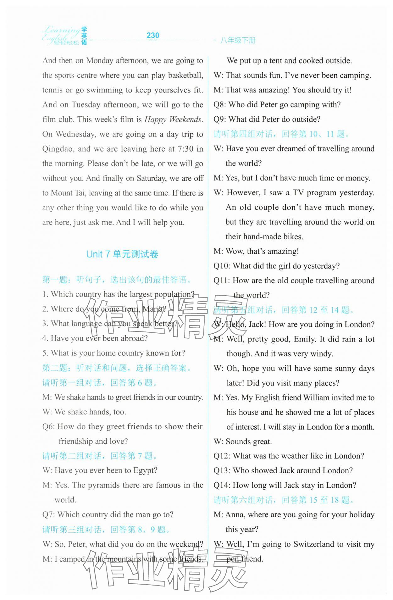 注:目前有些书本章节名称可能整理的还不是很完善,但都是按照顺序排列的,请同学们按照顺序仔细查找。练习册 2025年轻轻松松八年级英语下册冀教版 答案主要是用来给同学们做完题方便对答案用的,请勿直接抄袭。
