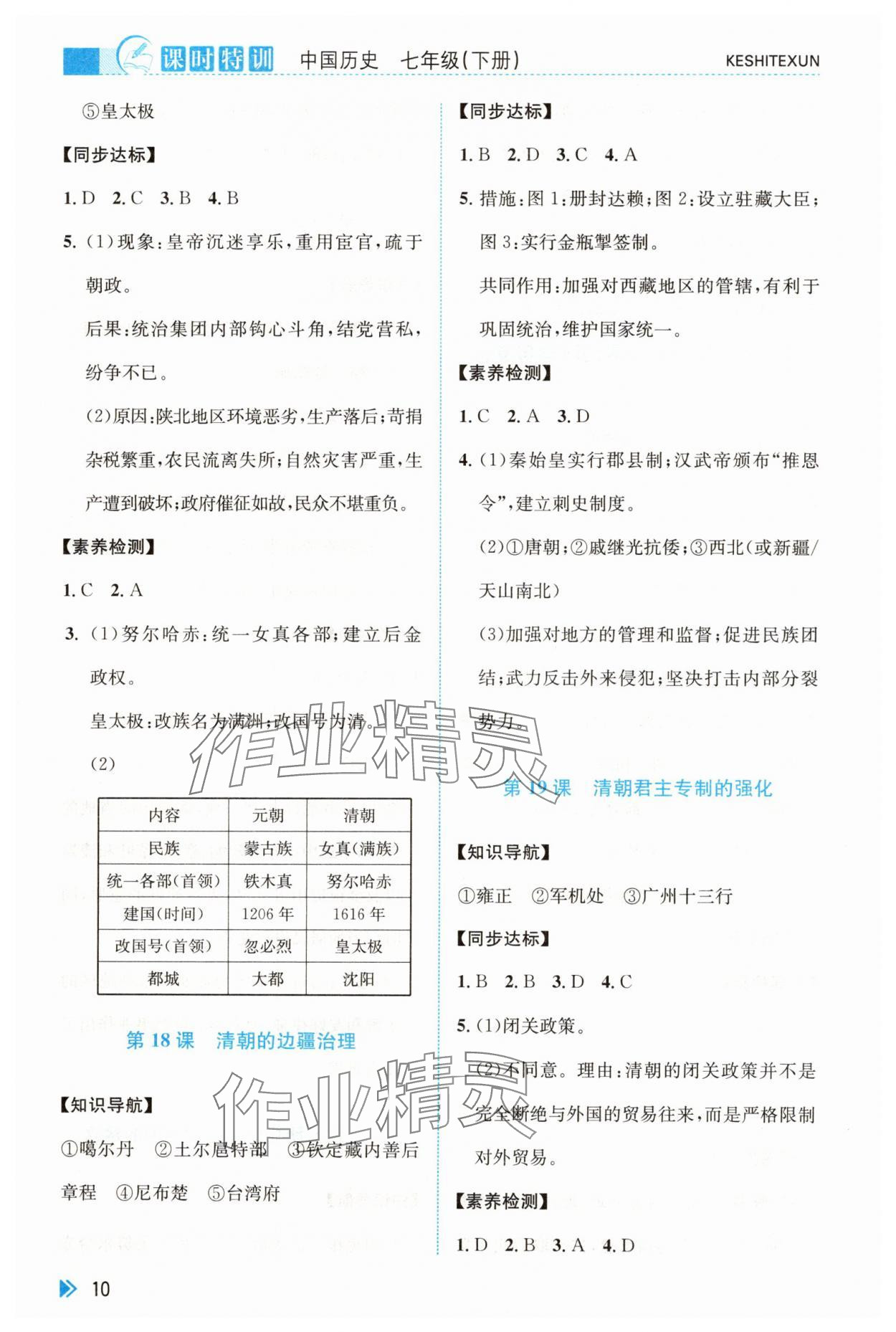 注:目前有些书本章节名称可能整理的还不是很完善,但都是按照顺序排列的,请同学们按照顺序仔细查找。练习册 2025年课时特训七年级历史下册人教版 答案主要是用来给同学们做完题方便对答案用的,请勿直接抄袭。