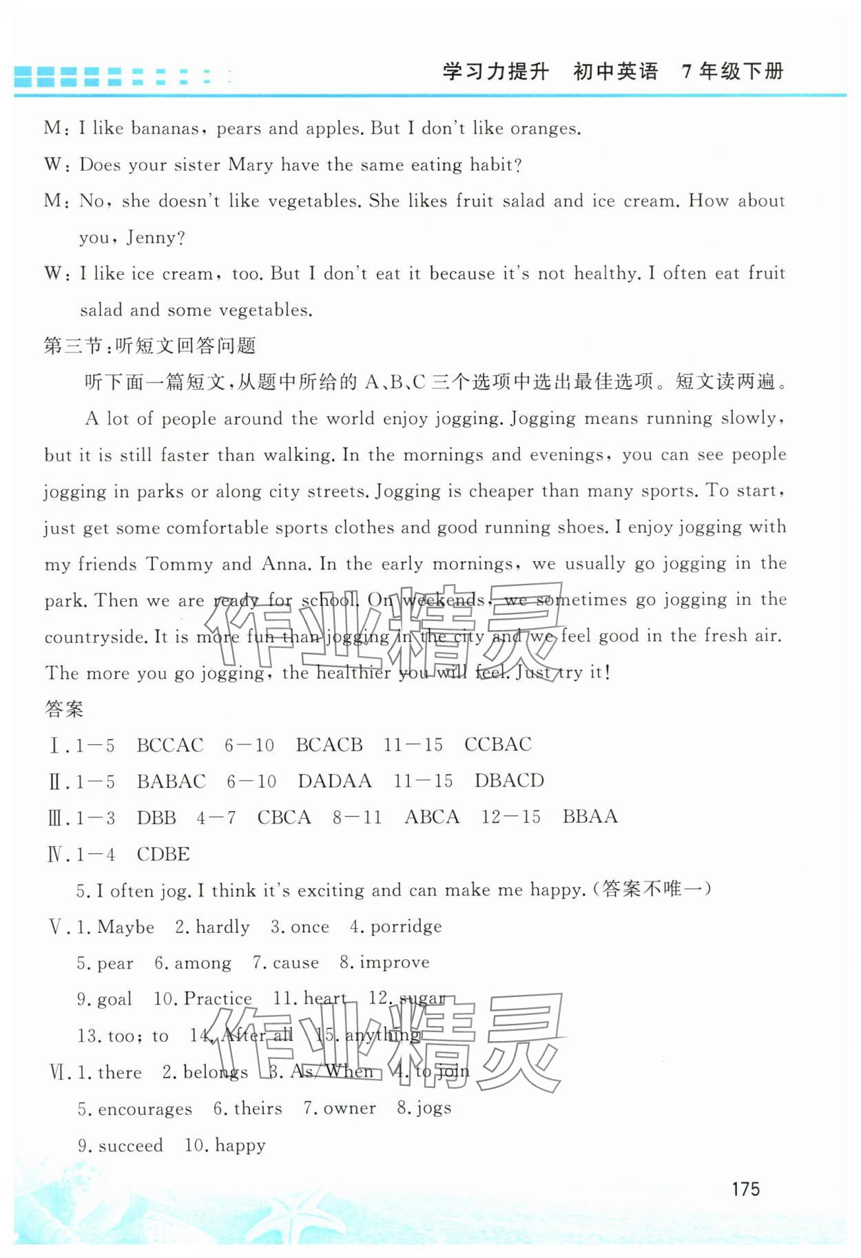 注:目前有些书本章节名称可能整理的还不是很完善,但都是按照顺序排列的,请同学们按照顺序仔细查找。练习册 2025年学习力提升七年级英语下册人教版 答案主要是用来给同学们做完题方便对答案用的,请勿直接抄袭。