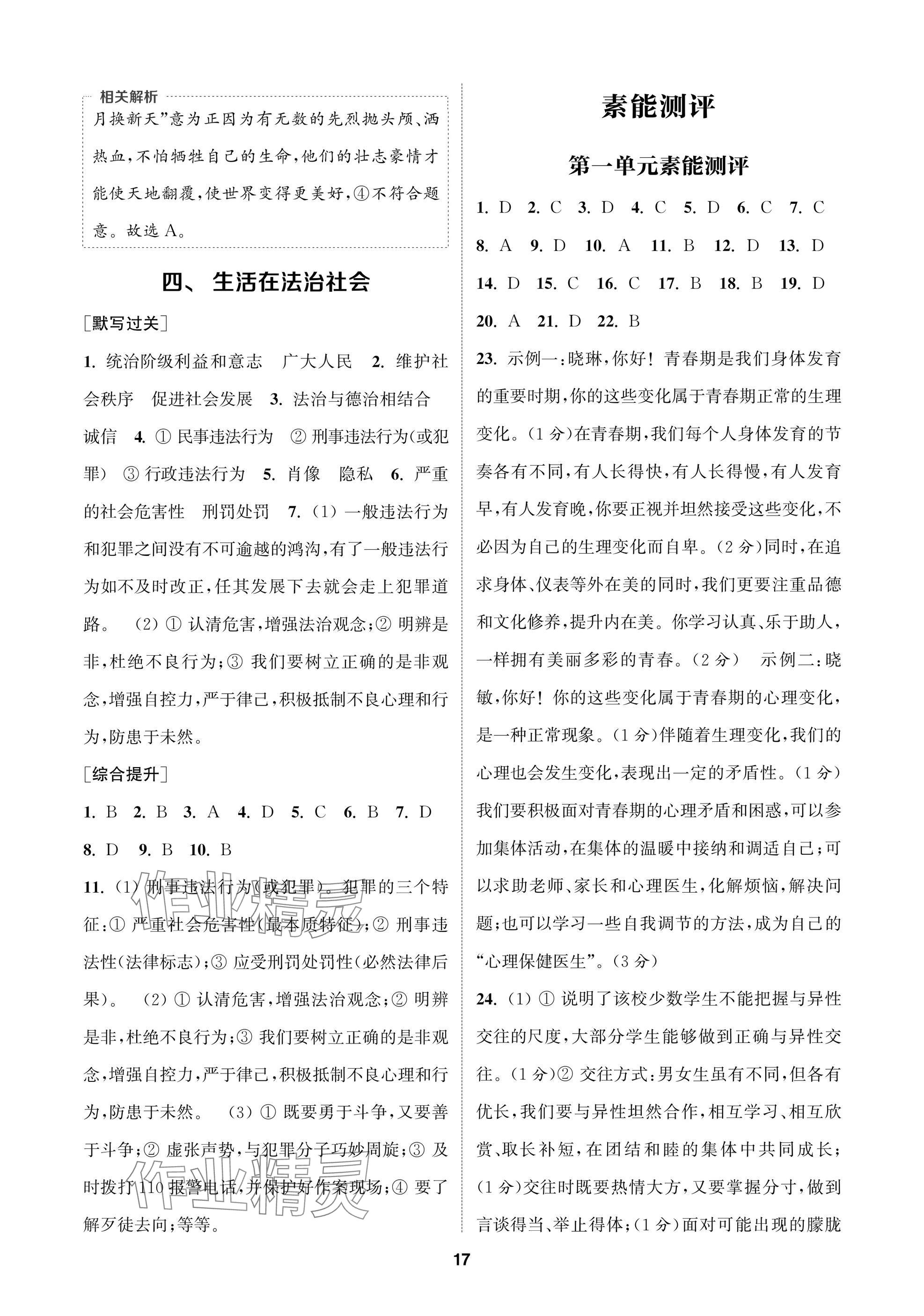 注:目前有些书本章节名称可能整理的还不是很完善,但都是按照顺序排列的,请同学们按照顺序仔细查找。练习册 2025年通成学典课时作业本七年级道德与法治下册人教版苏州专版 答案主要是用来给同学们做完题方便对答案用的,请勿直接抄袭。