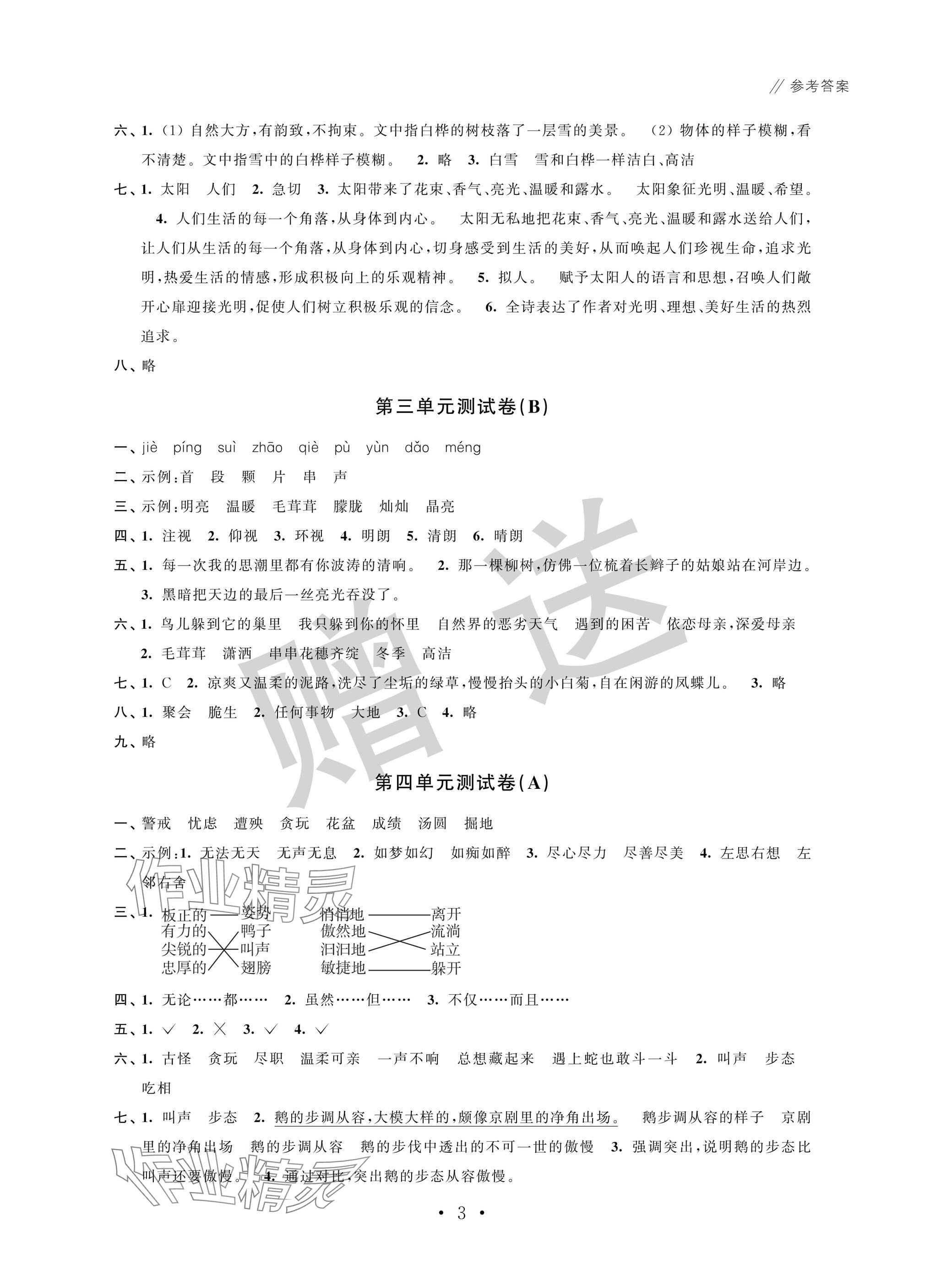 注:目前有些书本章节名称可能整理的还不是很完善,但都是按照顺序排列的,请同学们按照顺序仔细查找。练习册 2025年自主学习与测评单元活页卷四年级语文下册人教版 答案主要是用来给同学们做完题方便对答案用的,请勿直接抄袭。