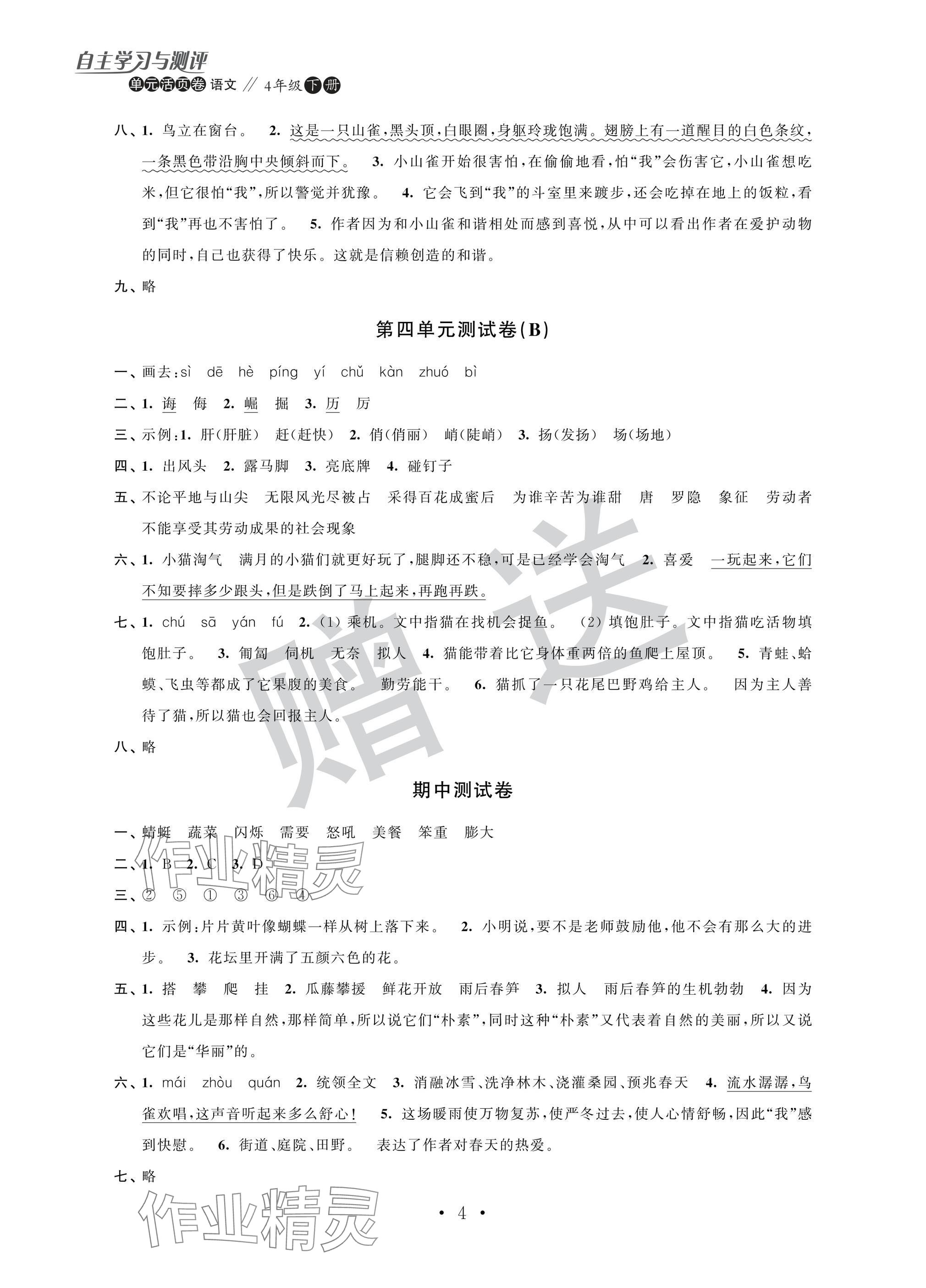 注:目前有些书本章节名称可能整理的还不是很完善,但都是按照顺序排列的,请同学们按照顺序仔细查找。练习册 2025年自主学习与测评单元活页卷四年级语文下册人教版 答案主要是用来给同学们做完题方便对答案用的,请勿直接抄袭。