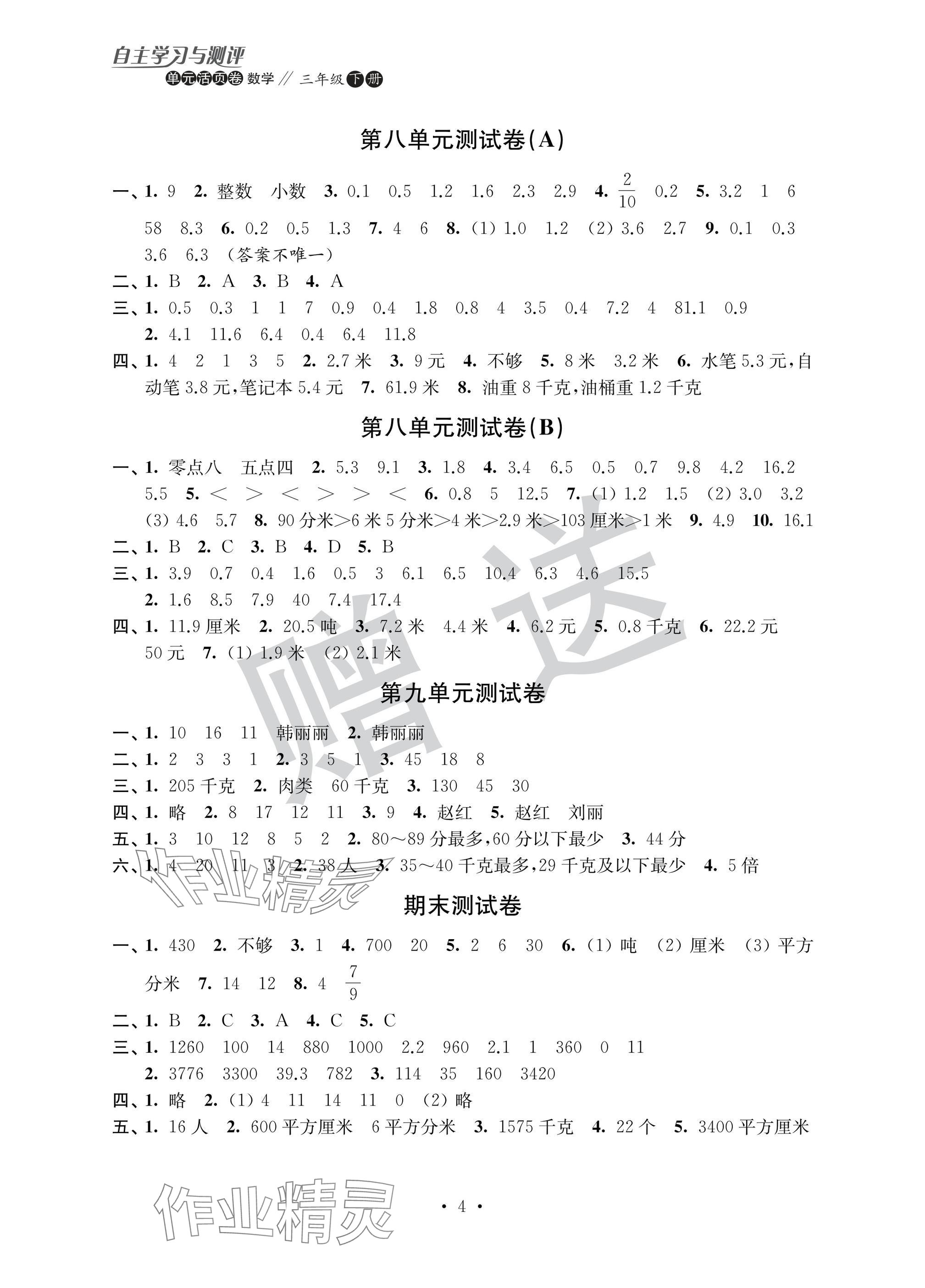 注:目前有些书本章节名称可能整理的还不是很完善,但都是按照顺序排列的,请同学们按照顺序仔细查找。练习册 2025年自主学习与测评单元活页卷三年级数学下册苏教版 答案主要是用来给同学们做完题方便对答案用的,请勿直接抄袭。