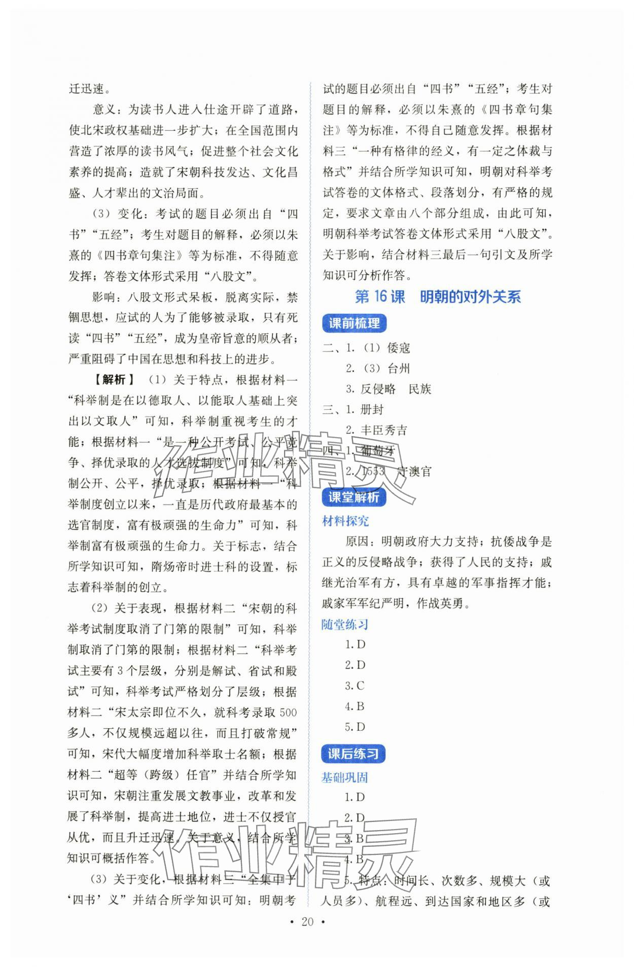 2025年人教金学典同步练习册同步解析与测评七年级历史下册人教版山西专版
